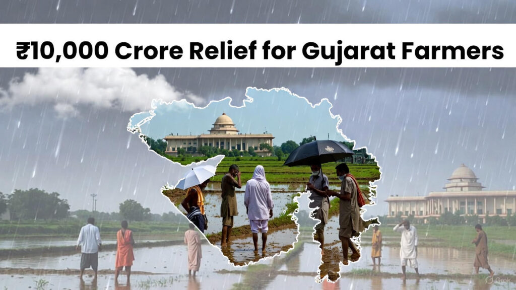 The Gujarat government has announced a compensation package of Rs 10,000 crore to provide assistance to farmers whose crops were damaged due to unseasonal rains across the state. Heavy rains affected all 33 districts over the past few weeks, causing massive losses during the crucial crop period. A government survey revealed crop damage to more than 44 lakh hectares in 16,500 villages in 251 talukas.