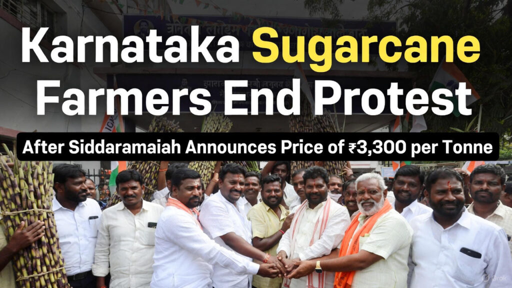Sugarcane farmers in key districts of north Karnataka, including Belagavi, Bagalkot and Vijayapura, called off their nine-day agitation on Friday after Chief Minister Siddaramaiah announced a revised price of ₹3,300 per tonne, including payments from sugar mills and state subsidy.The protests, which disrupted traffic and drew widespread attention to farmers’ grievances, ended peacefully after government intervention.