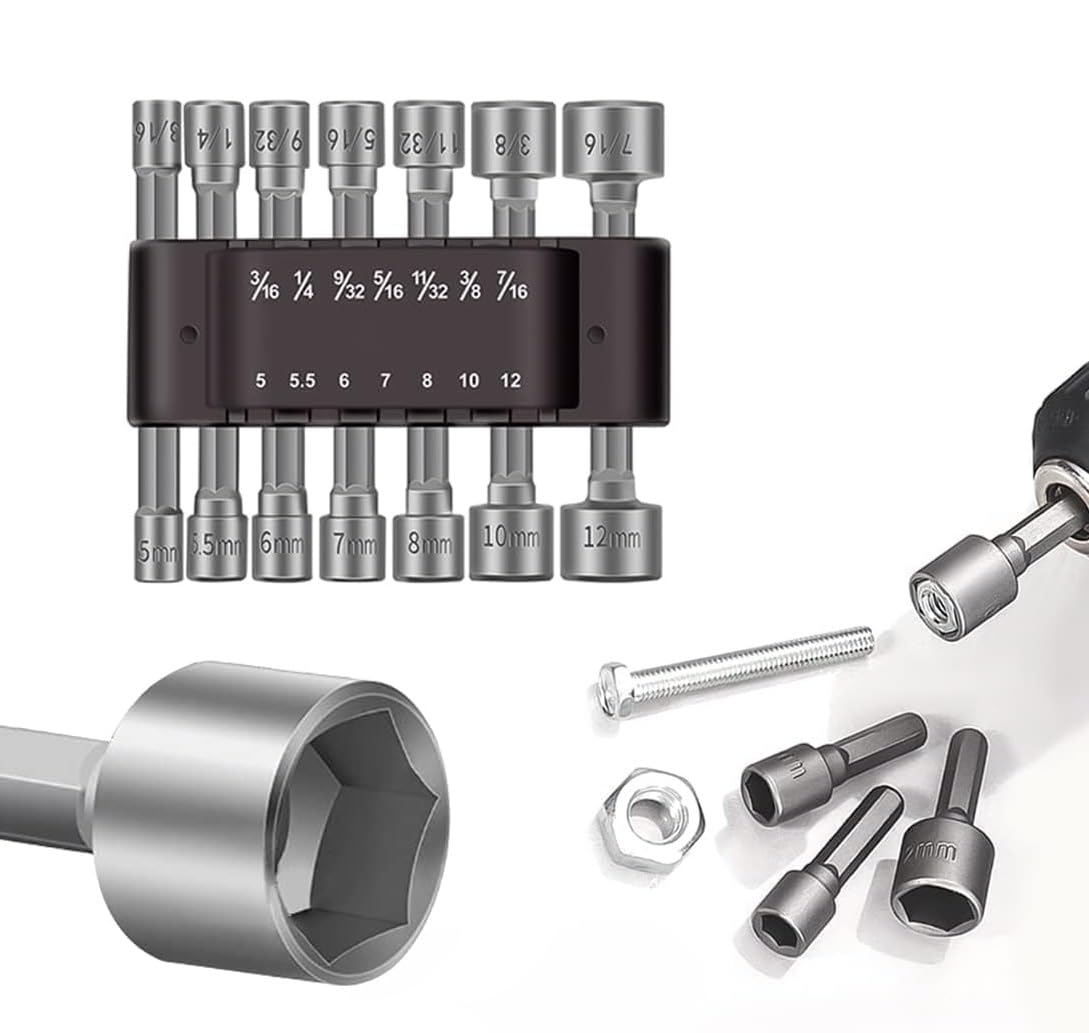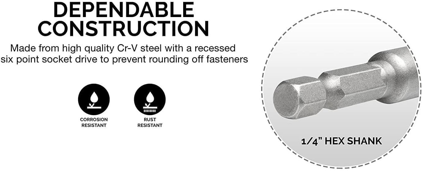 14 Piece Power Nut Driver Drill Bit Socket Wrench Tool Set | 35K Carbon Steel 1/4 Inch Hex Shank Nut Driver Bits | Rustproof Wrench Adapter Kit for Drill Machine