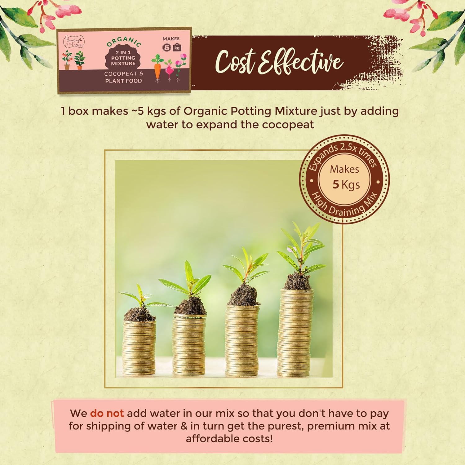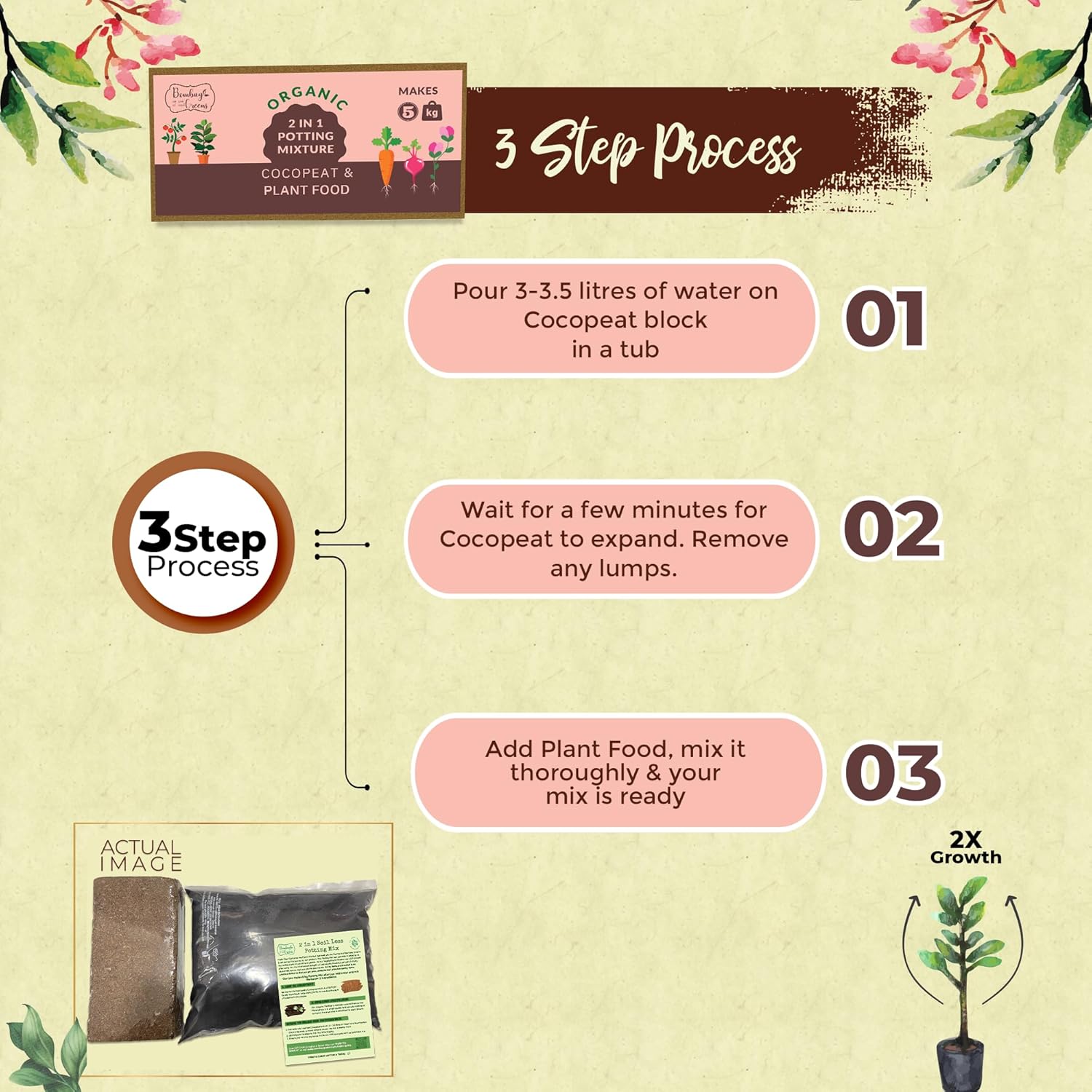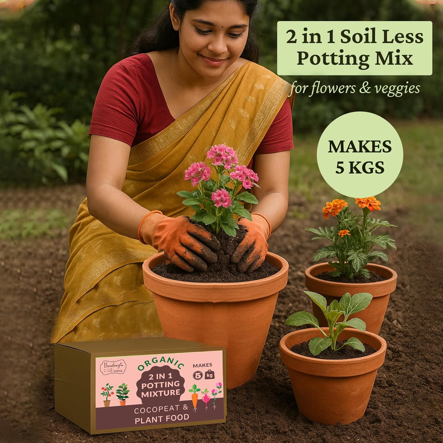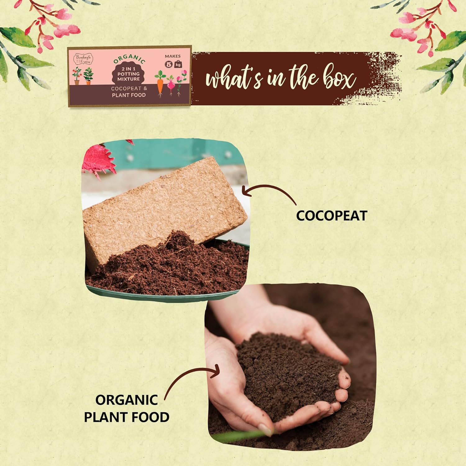 5Kg Soil Less 2 in 1 Potting Mixture – Contains Cocopeat and Organic Plant Food for Plants | Pot Mix for Home Gardening or Terrace Garden by Bombay Greens