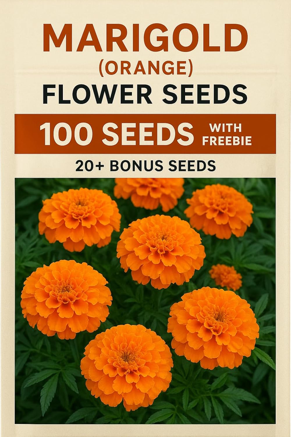 African Marigold Flower Seeds – (100 Seeds Par Packet) 20+ Free Seeds – Bright Orange Blossoms for Home Garden |