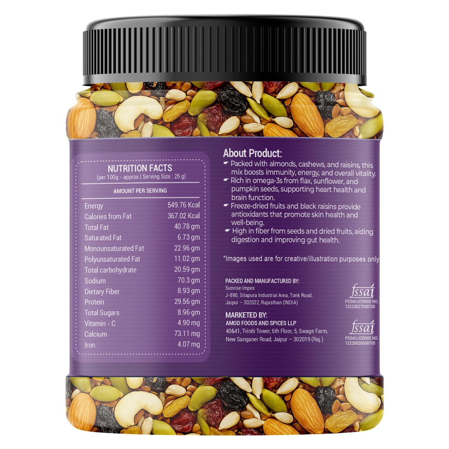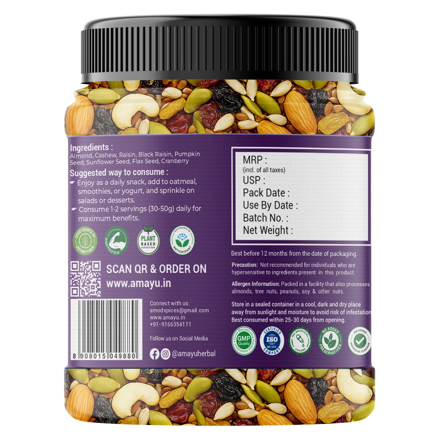 Amayu Premium Mixed Dry Fruits 450gm Superfood Trail Mix with Almonds, Cashews, Raisins, Nuts & Seeds Rich in Antioxidants Panchameva Mix Dry Fruits in Fresh Good Source for Energy