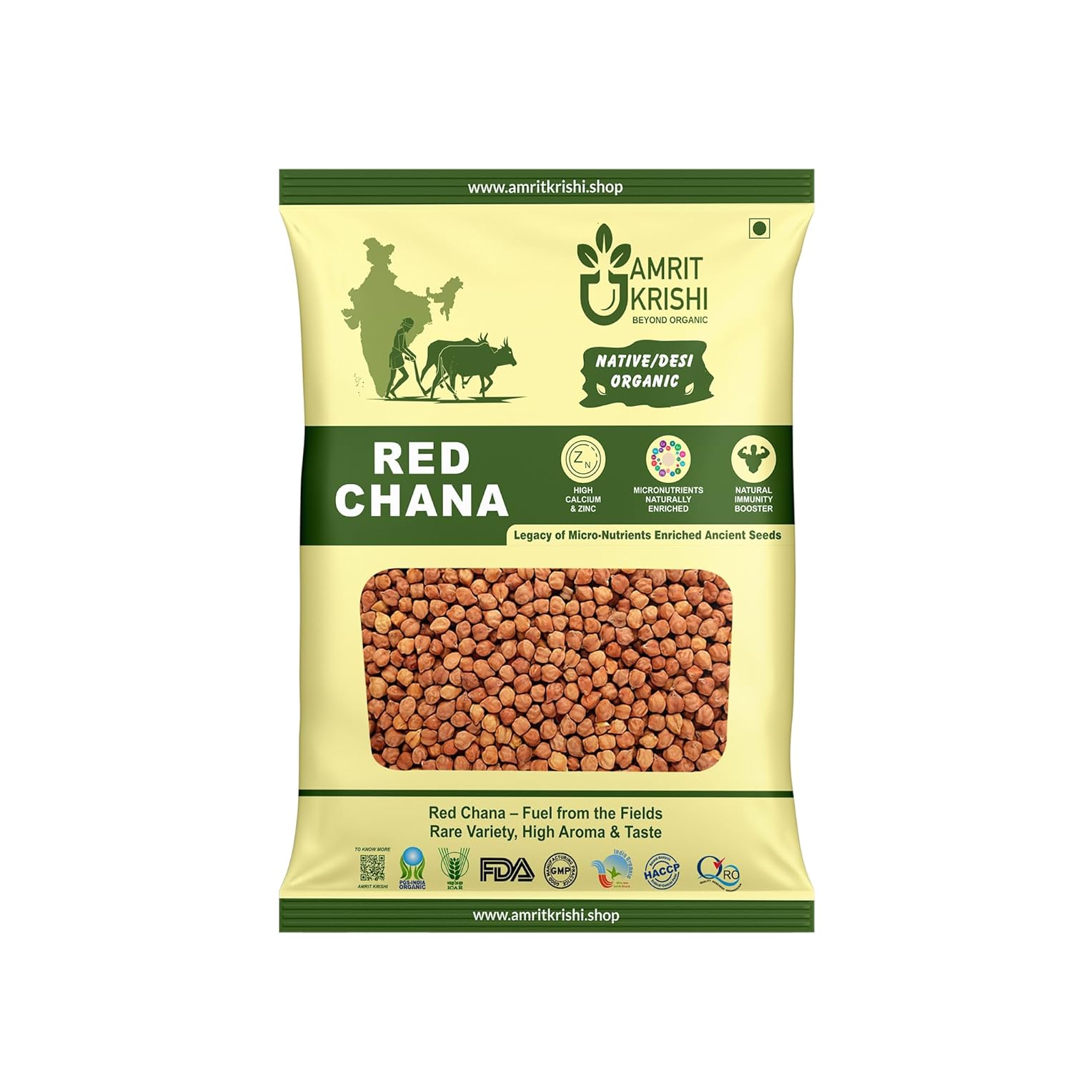 Amrit Krishi Desi Red Chana | Black Chickpeas Sabut Gram Whole | Unpolished, High Roughage, Micronutrients Enriched Organic Red Chana 1Kg – Heritage Desi Black Chickpeas, High Calcium & Zinc, Natural Immunity Booster