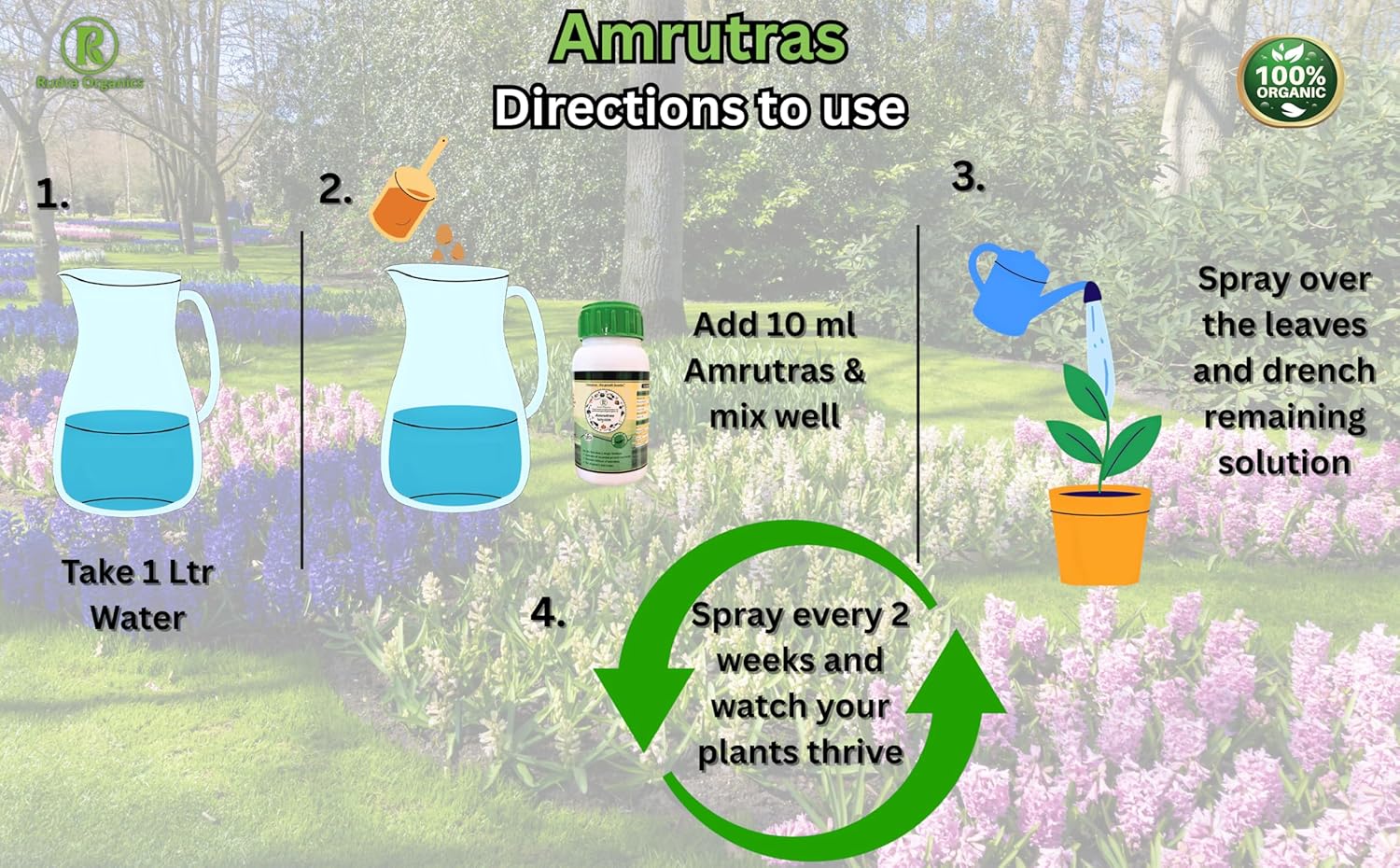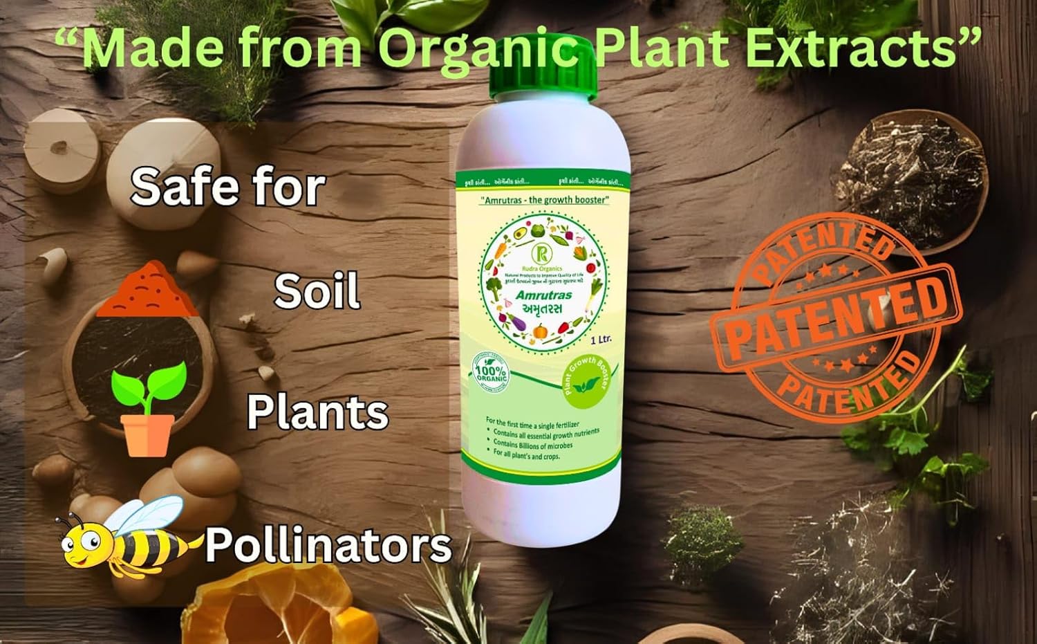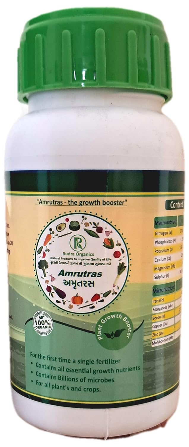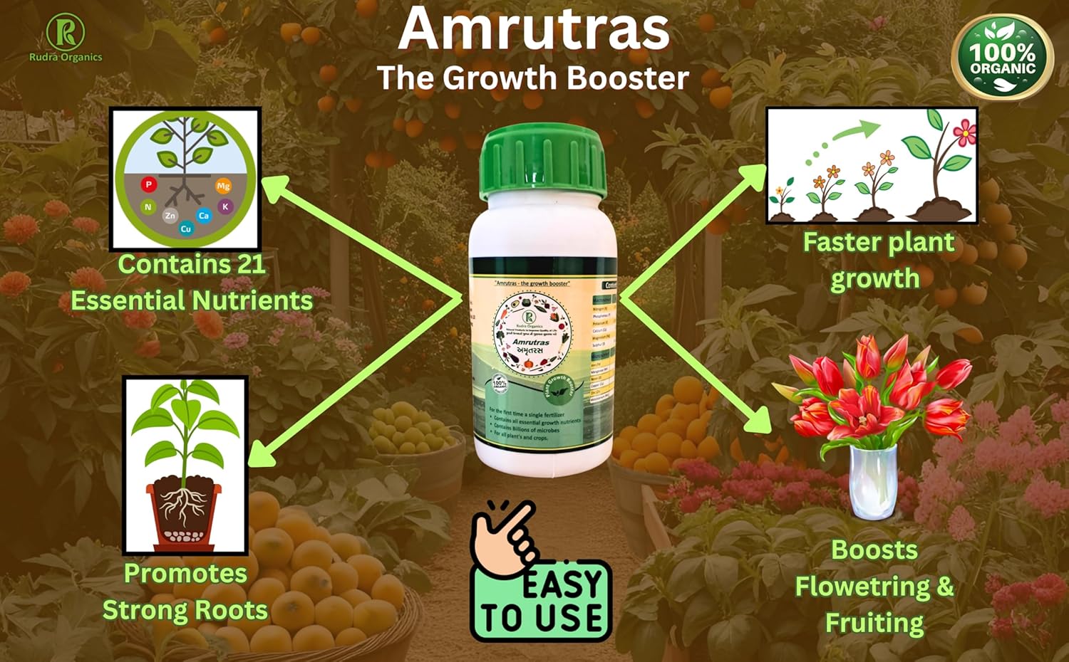 Amrutras Advanced Growth Booster, Organic Plant Formula with GA3, NAA, Cytokinins & Beneficial Microbes, 250 ML – All-in-One Liquid Fertilizer for Vegetables, Fruits, Flowers, Home Gardens & Farms
