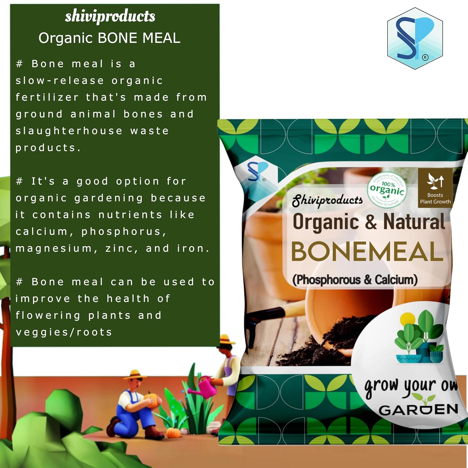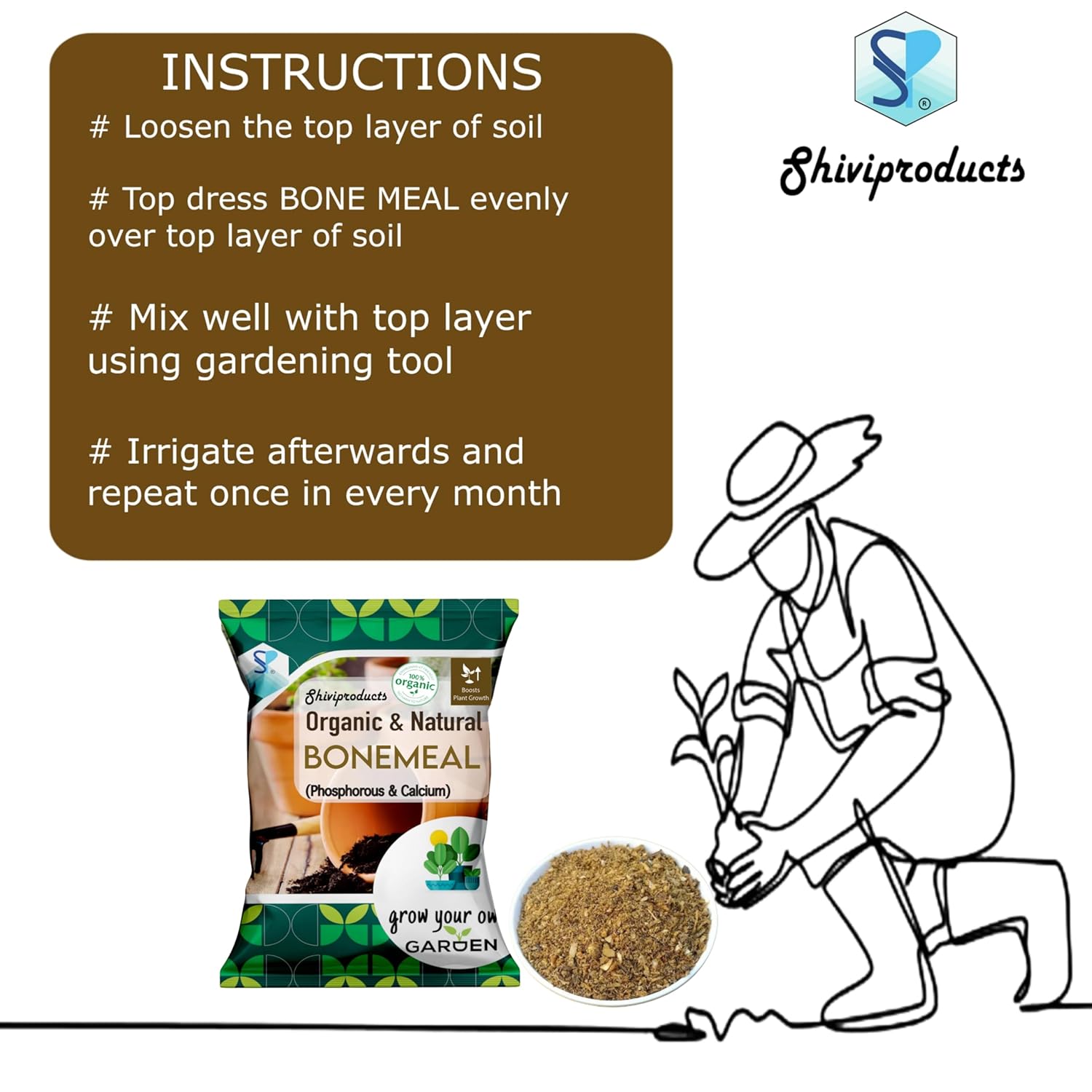 Bone Meal fertilizer for plants home gardening (1.9kg) as Organic NPK 3-15-0 | Essential organic phosphorous supplement