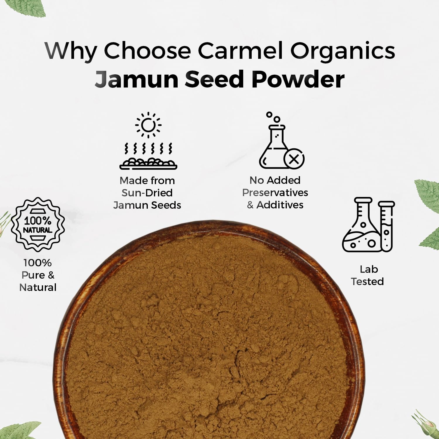 CARMEL ORGANICS Jamun Seed Powder (340 Grams) | Natural | No Added Preservatives | Naaval Pazham Vitaippu Maavu | Syzygium Cumini | Help to Regulate Blood Sugar Levels