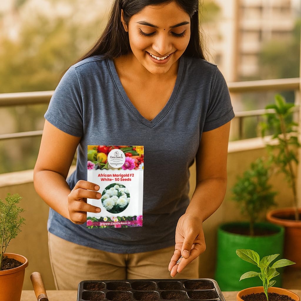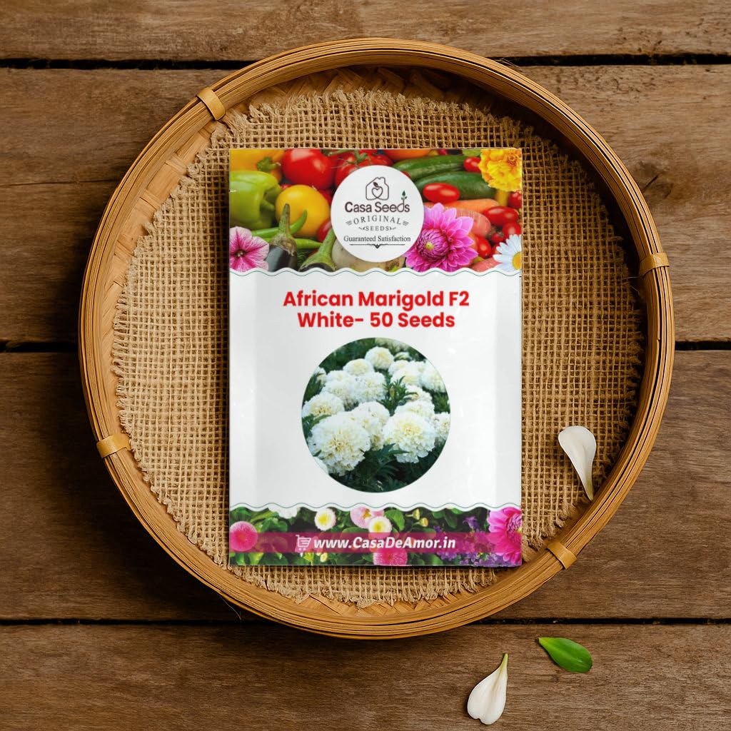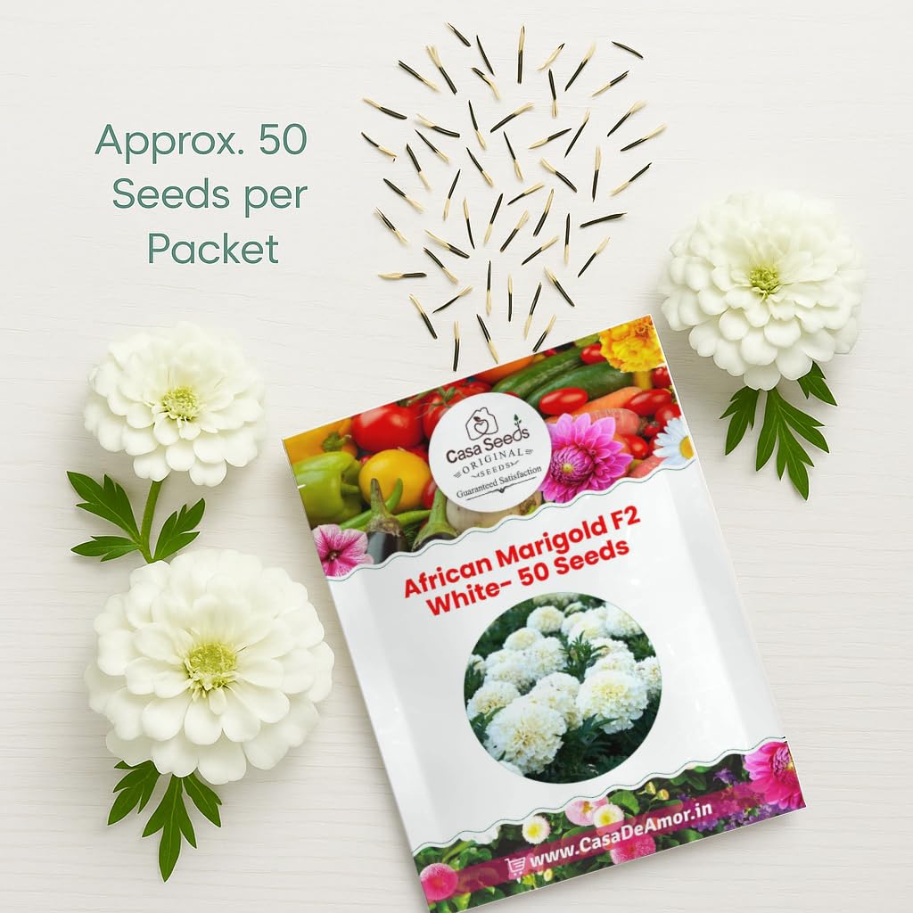 Casa De Amor African Marigold/Gainda F2 (White, 50 Seeds)