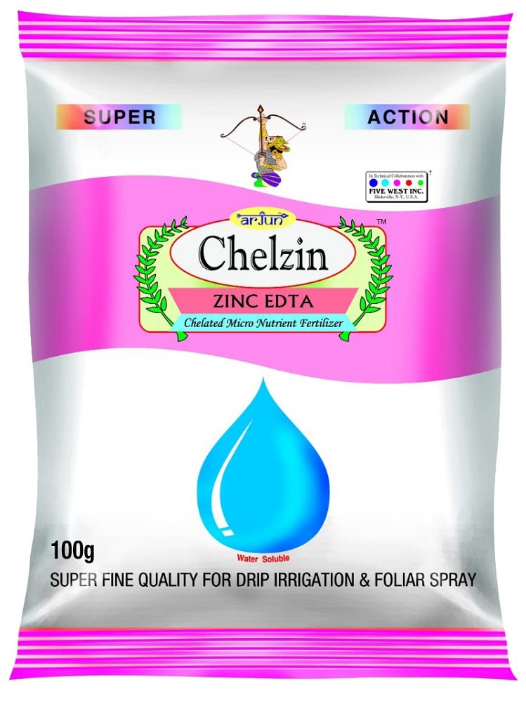 Chelzin Zinc EDTA Fertilizer | 12% Chelated Zinc Micronutrient | Water Soluble for Plants, Crops, Fruits & Vegetables | Drip, Foliar Spray & Hydroponics Use | 100g