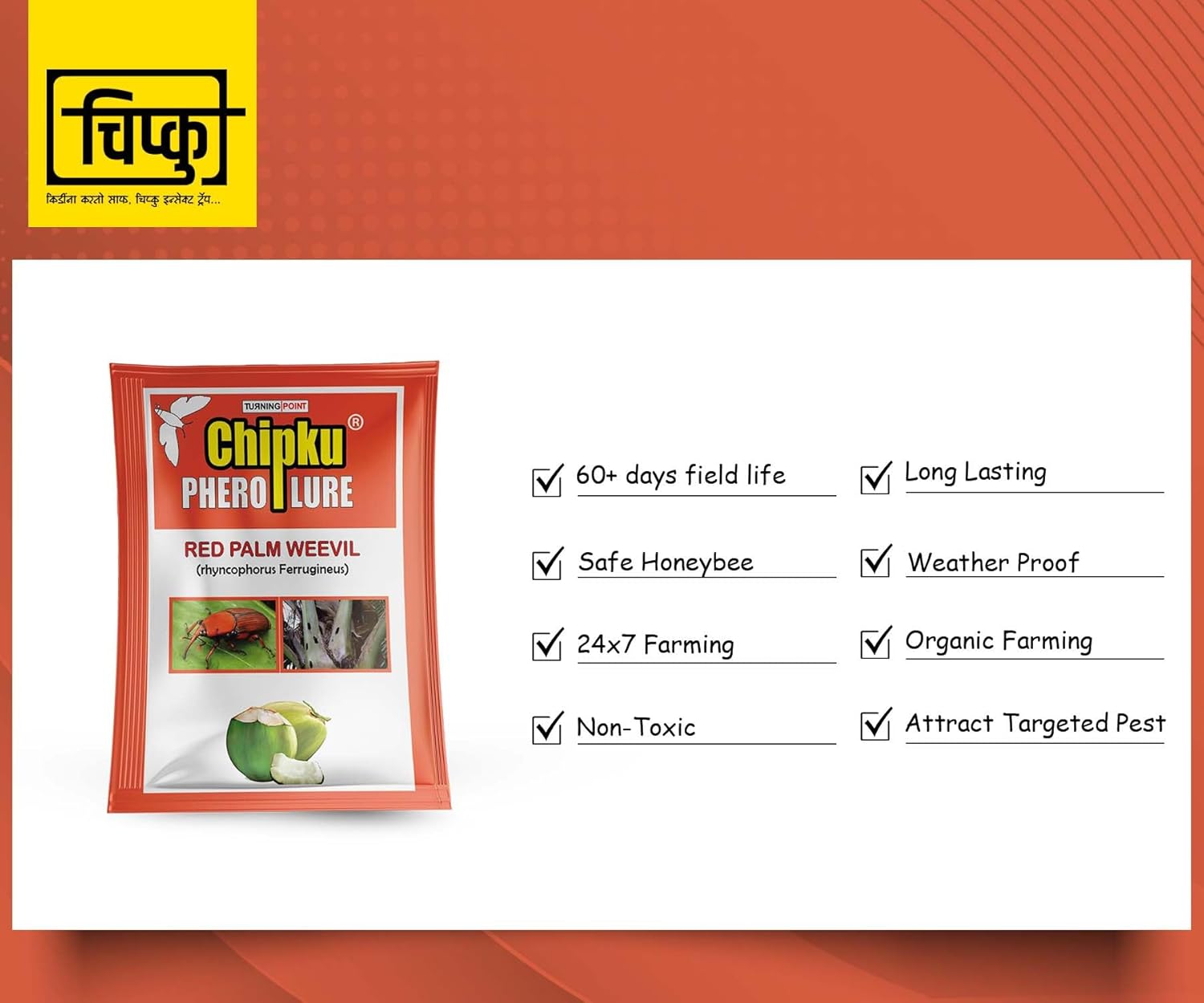Chipku_Red Palm Weevil Pheromone Lure Against Rhynchophorus ferrugineus & Oryctes Rhinoceros for Coconut Palm Tree Insects Control/Organic Farming/Turning Point Natural Care (Only Lure Pack of 2)