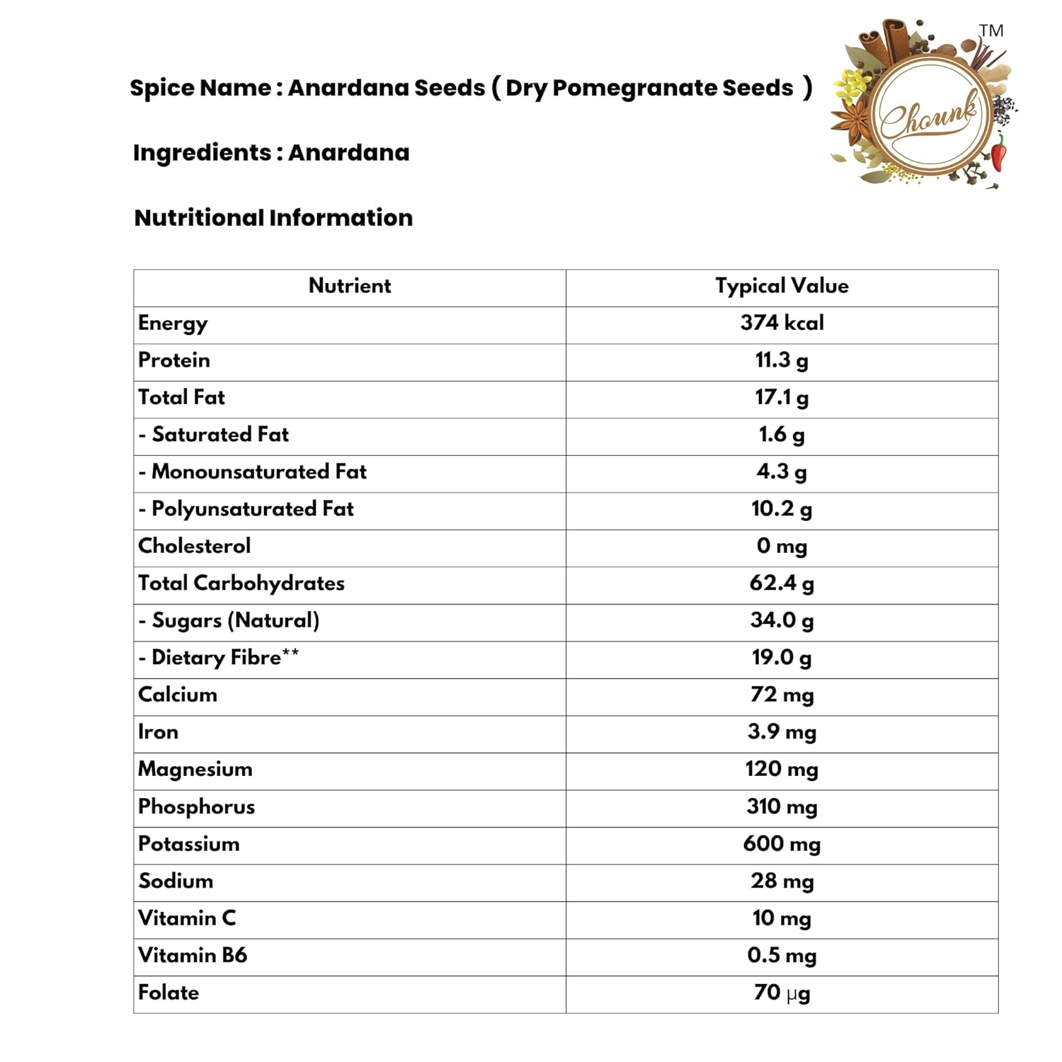 Chounk Pomegranate Seeds – 100 g (Pack Of 1) | Dried Anardana Whole | Anar Dana | Whole Spices Anardana Seeds | Anar Ke Beej