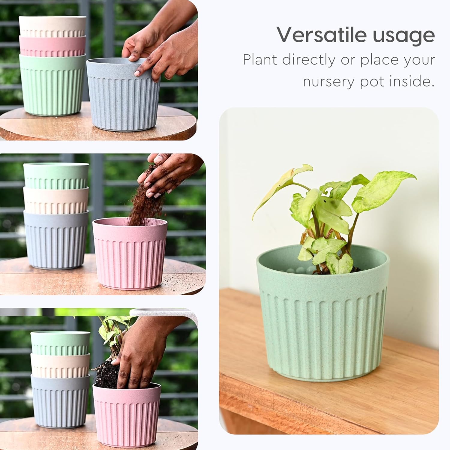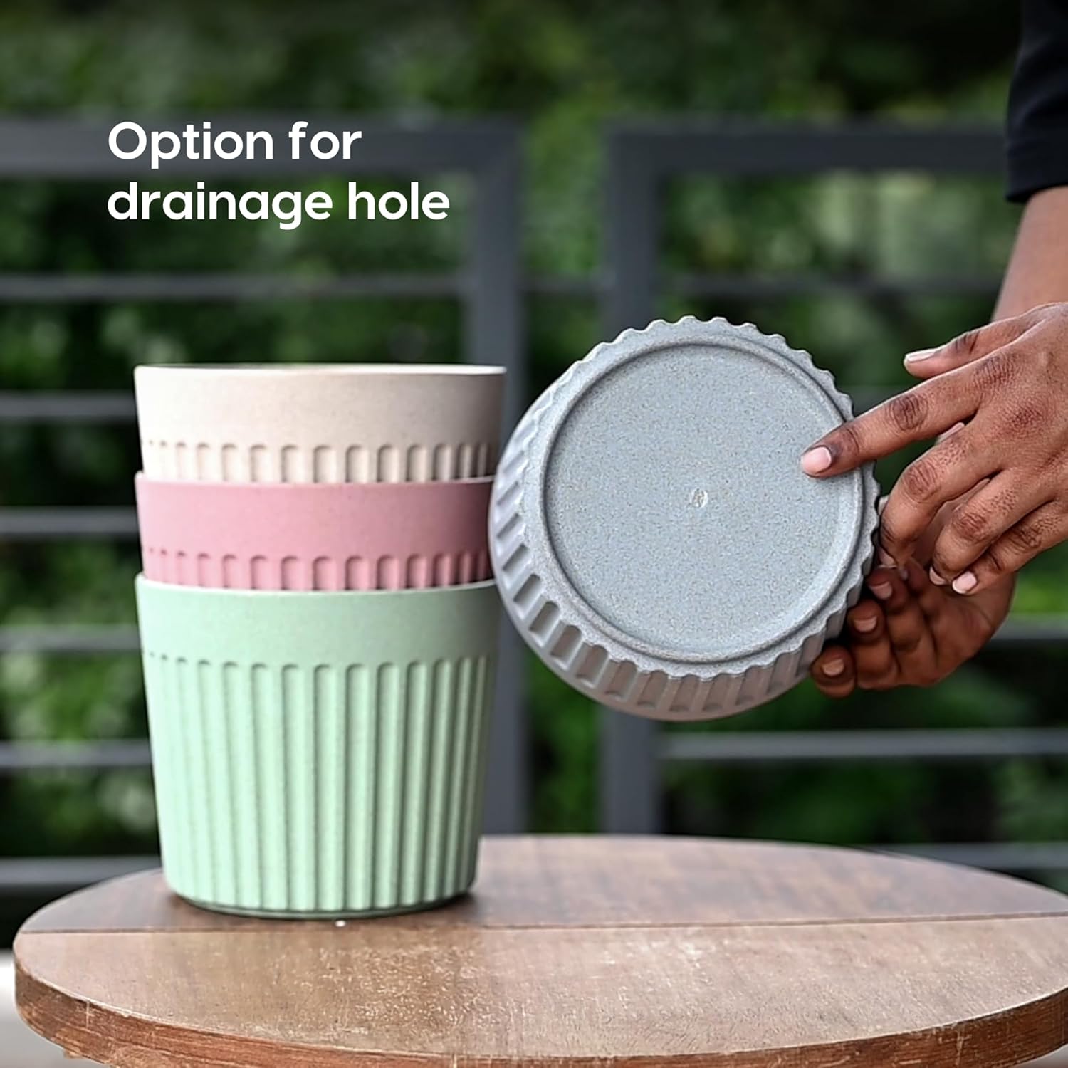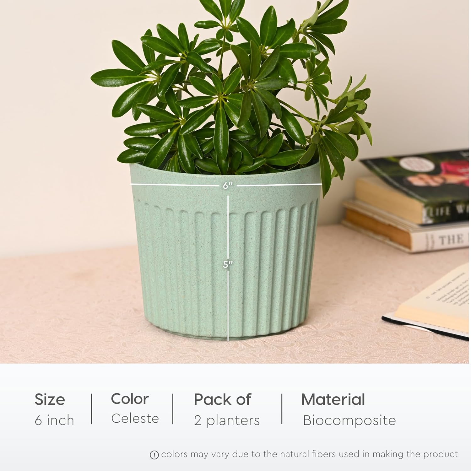 Eha Earth Friendly Romano 6 inch Planters for Home Décor | Set of 2 |Plant Pot Made with Bamboo Fibers | UV Protected Pots & Planters | Flower Pot for Living Room | Celeste