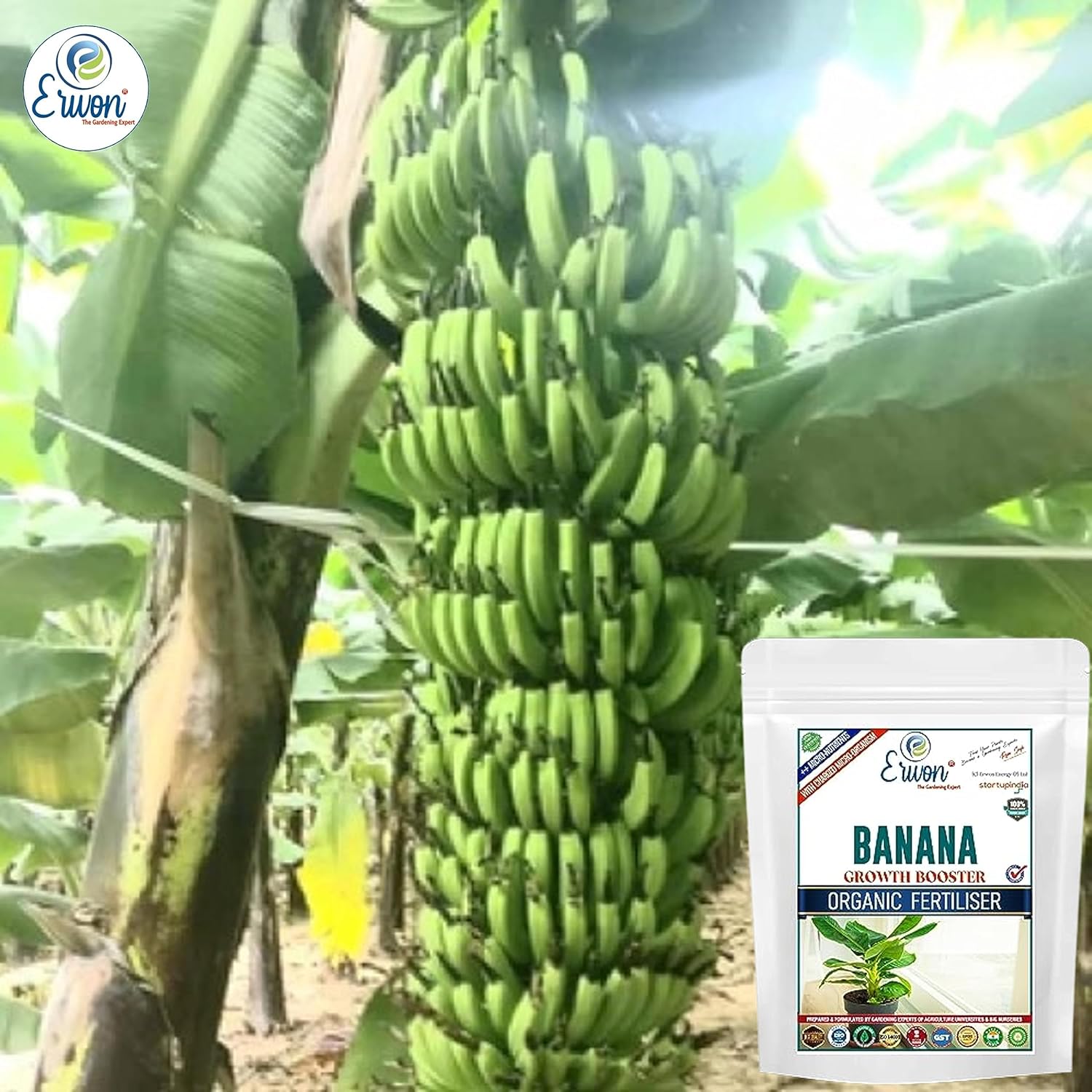 Erwon® Banana Growth Booster, Premium Essential Powerful Organic Fertilizer for Overall Growth of Banana Plants, with Charged Micro-organism and ++ Micronutrients (400 gm)