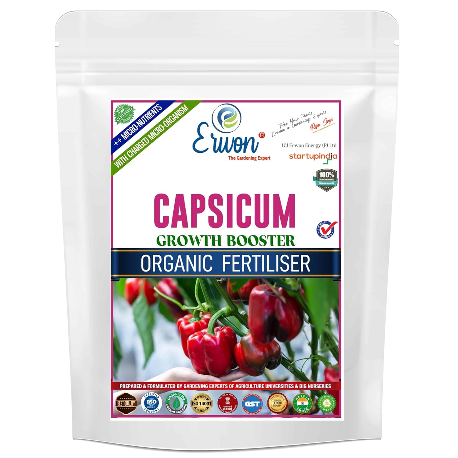 Erwon® Capsicum Growth Booster, Premium Essential Powerful Organic Fertilizer for Overall Growth of Capsicum Plants, with Charged Micro-organism and ++ Micronutrients (900 gm)