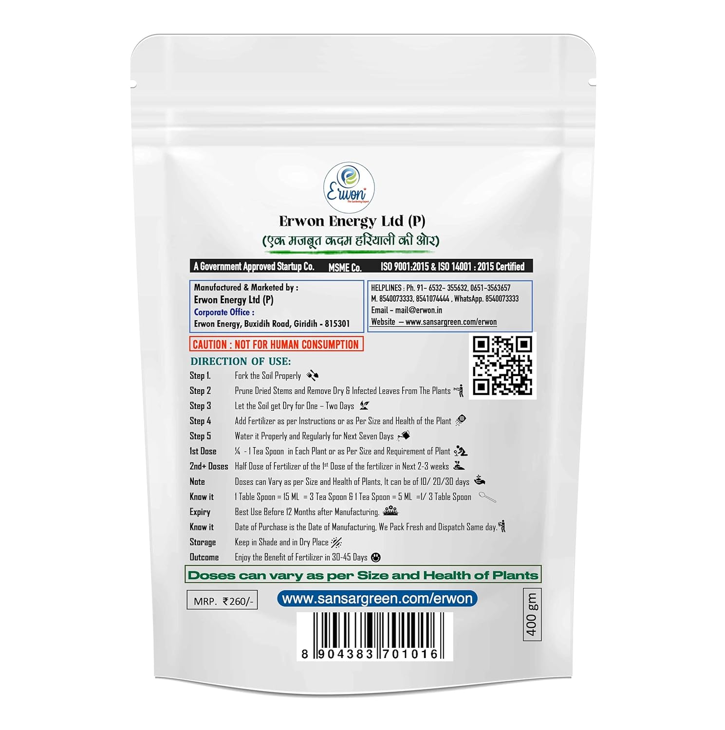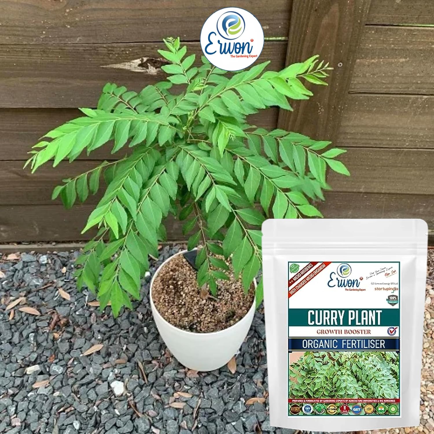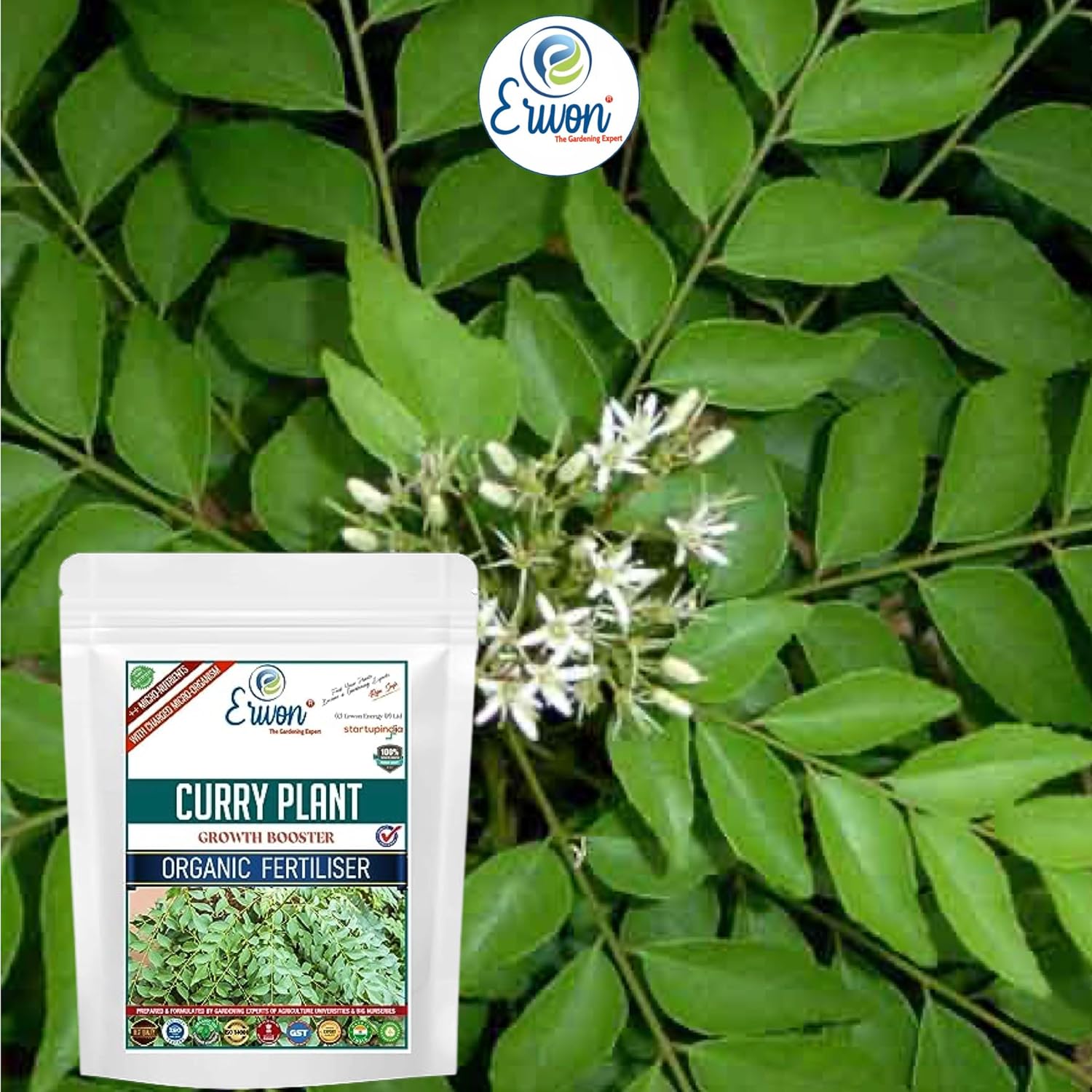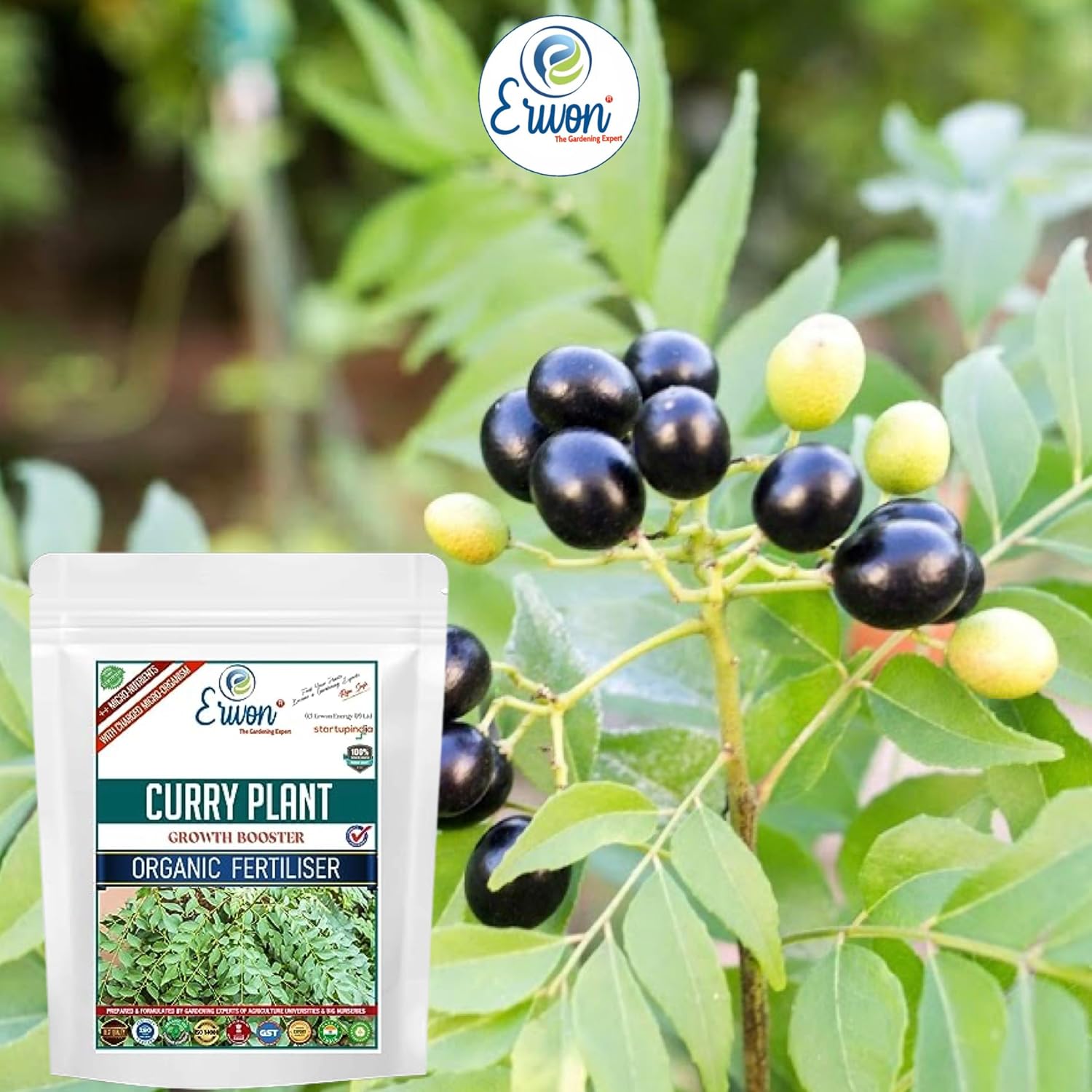 Erwon® Curry Plant Growth Booster, Premium Essential Powerful Organic Fertilizer for Overall Growth of Curry Plants, with Charged Micro-organism and ++ Micronutrients (400 gm)