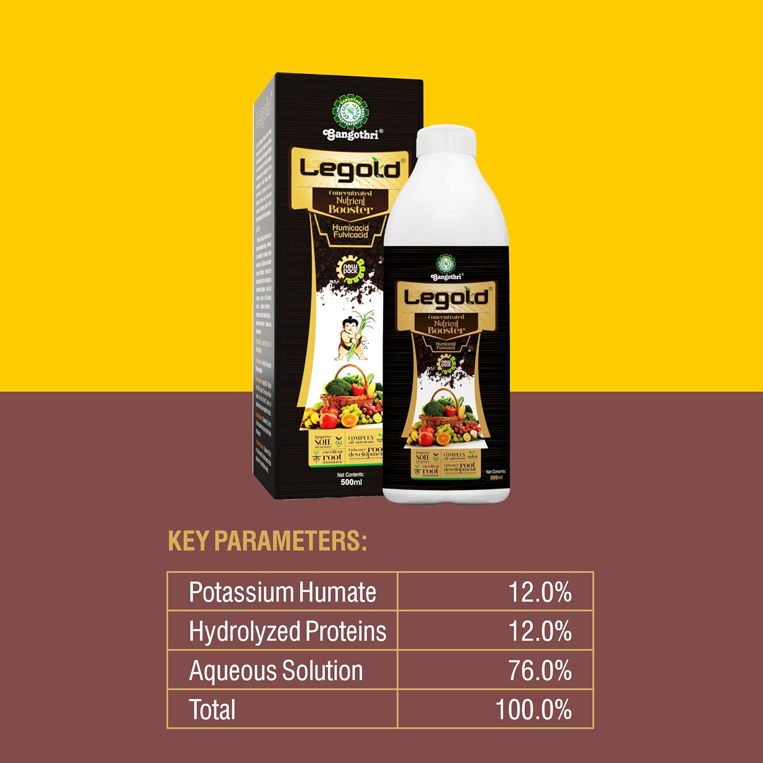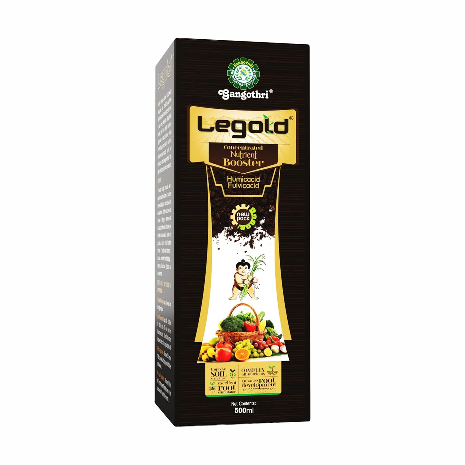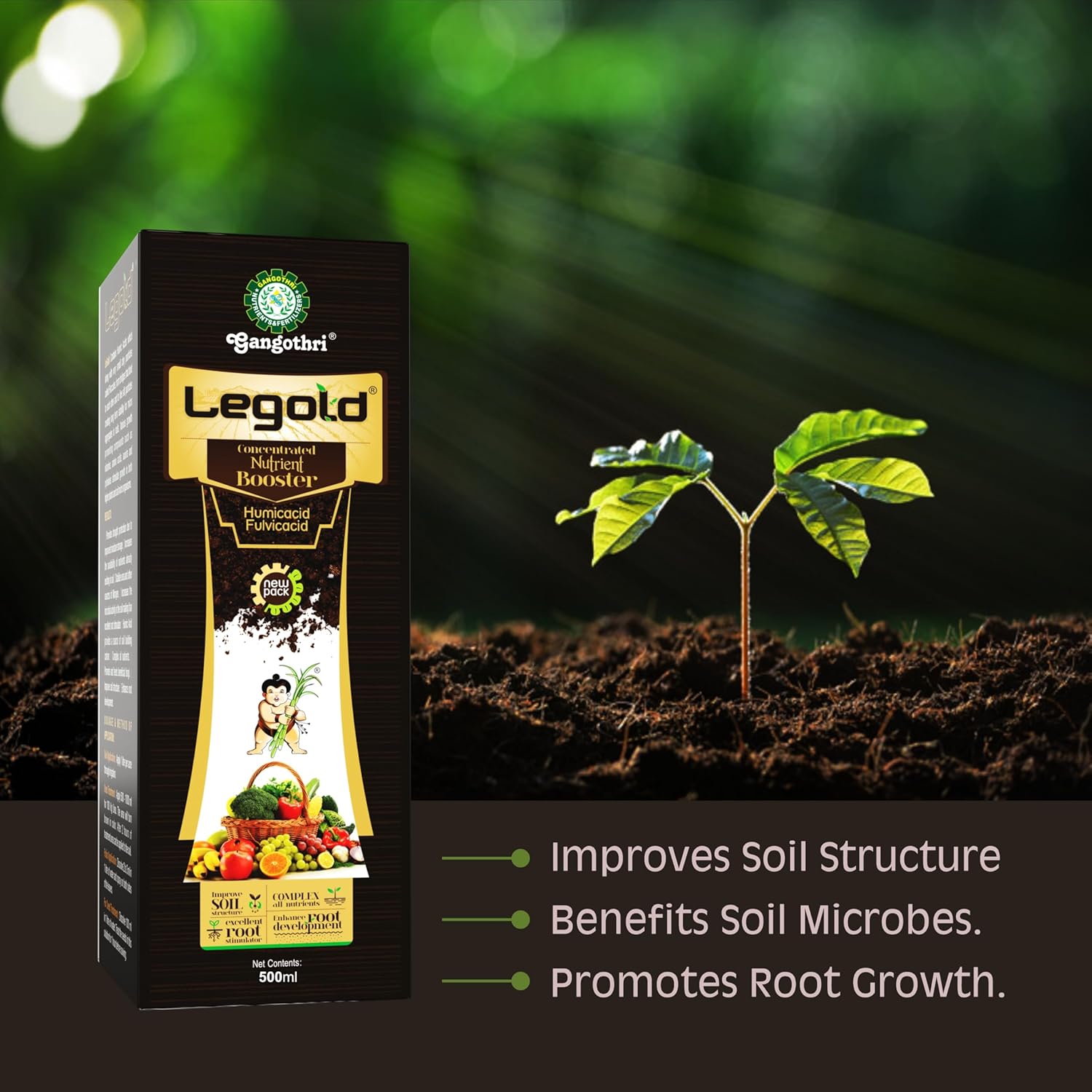 Gangothri LeGold- 500 ML Humic Acid + Fulvic Acid + Amino Acid + Bio-Potash 98% Organic Liquid Fertilizer, Plant Growth Enhancer, Soil Conditioner, Improves Plant Root System – 100% Water Soluble