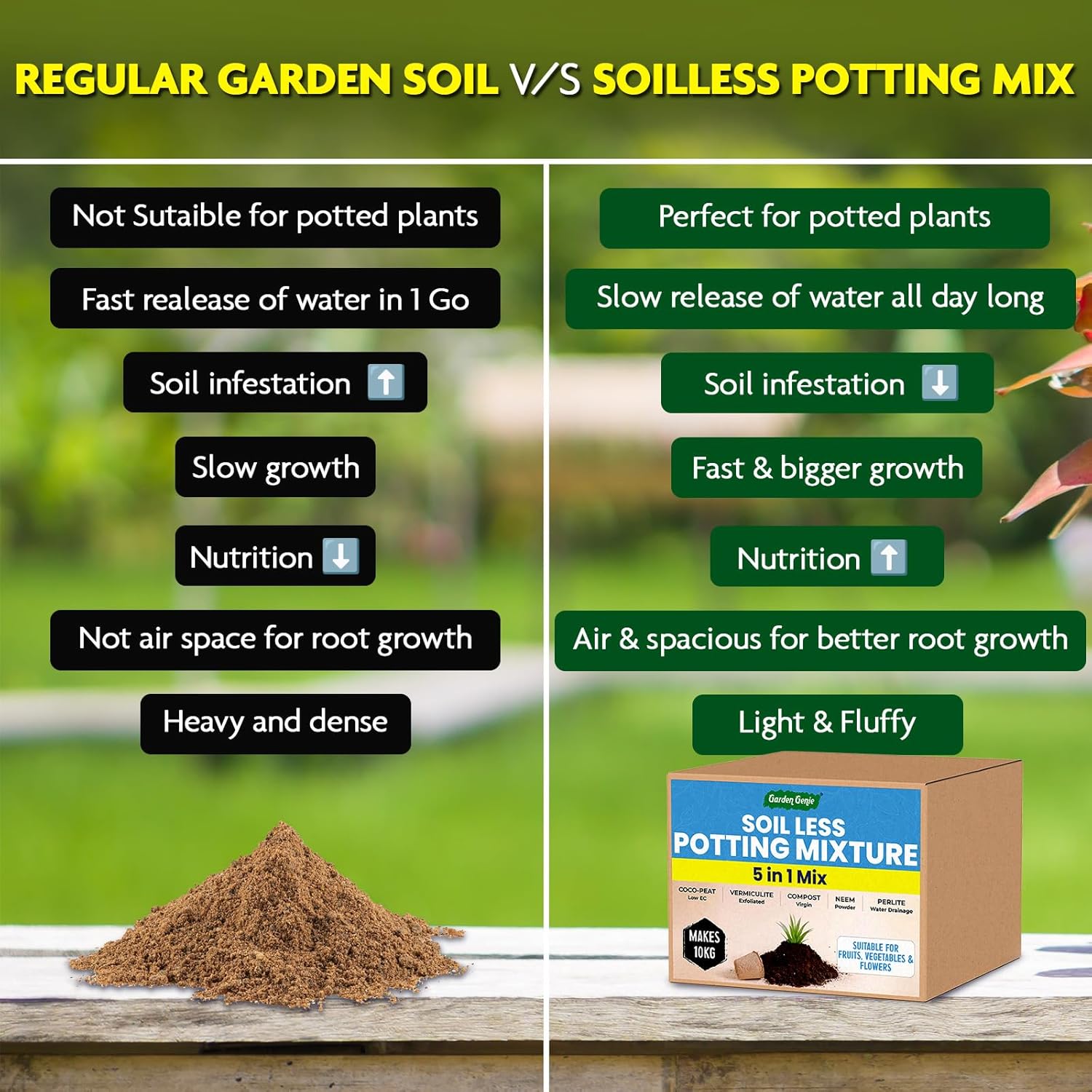 Garden Genie 5-in-1 Potting Soil Mixture – Key Ingredients (Cocopeat, Vermiculite, Vermicompost, Perlite, Neem Powder) – Makes 10 Kg of Fluffy Soil for Plants Home Garden | Potting Soil Mix for Plants
