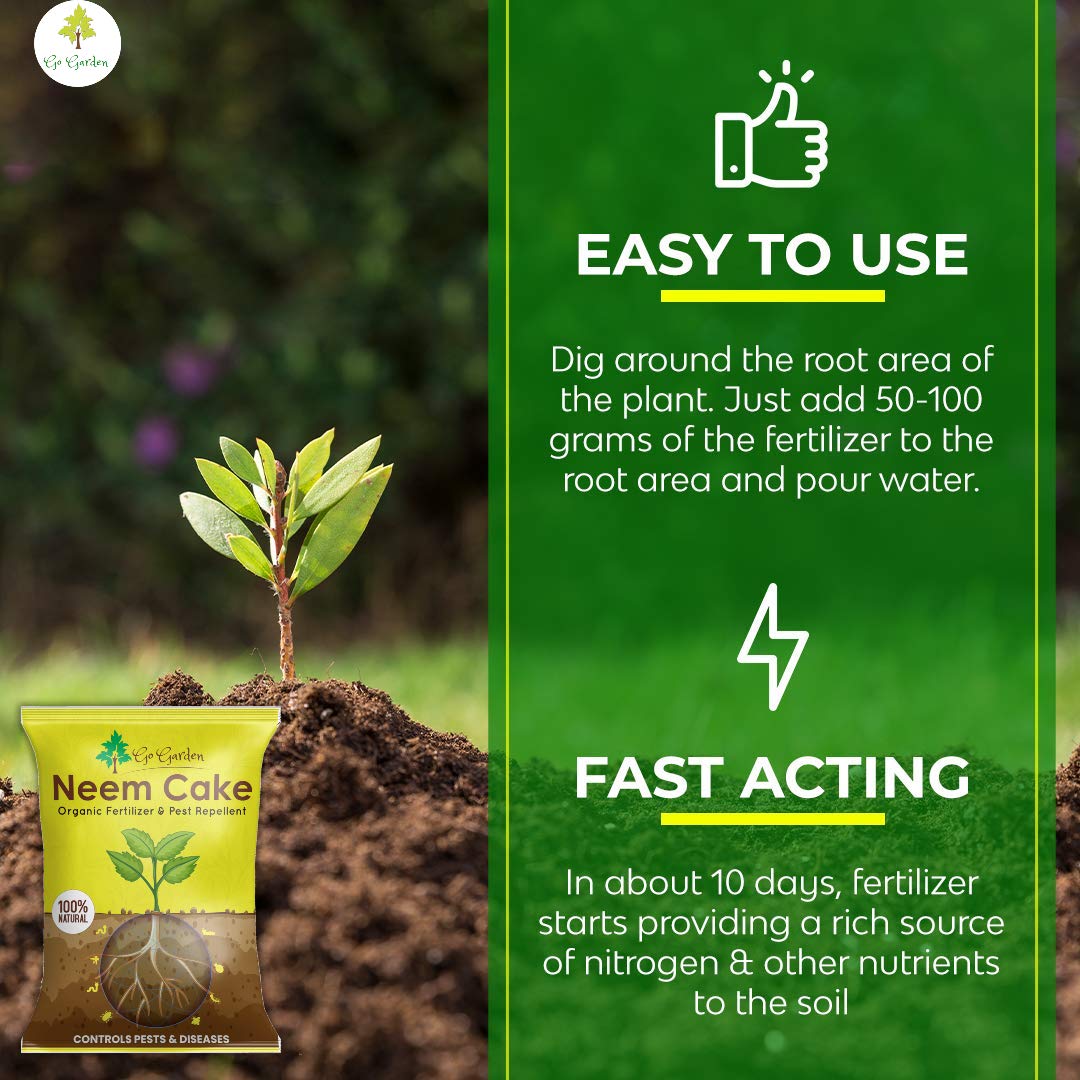 Go Garden Neem Cake: 100% Organic Fertilizer for Plants |Fertilizer for Plants, No-Harmful Chemicals, Pest Repellent, Rich in Nutrients Soil Conditioner (1kg)