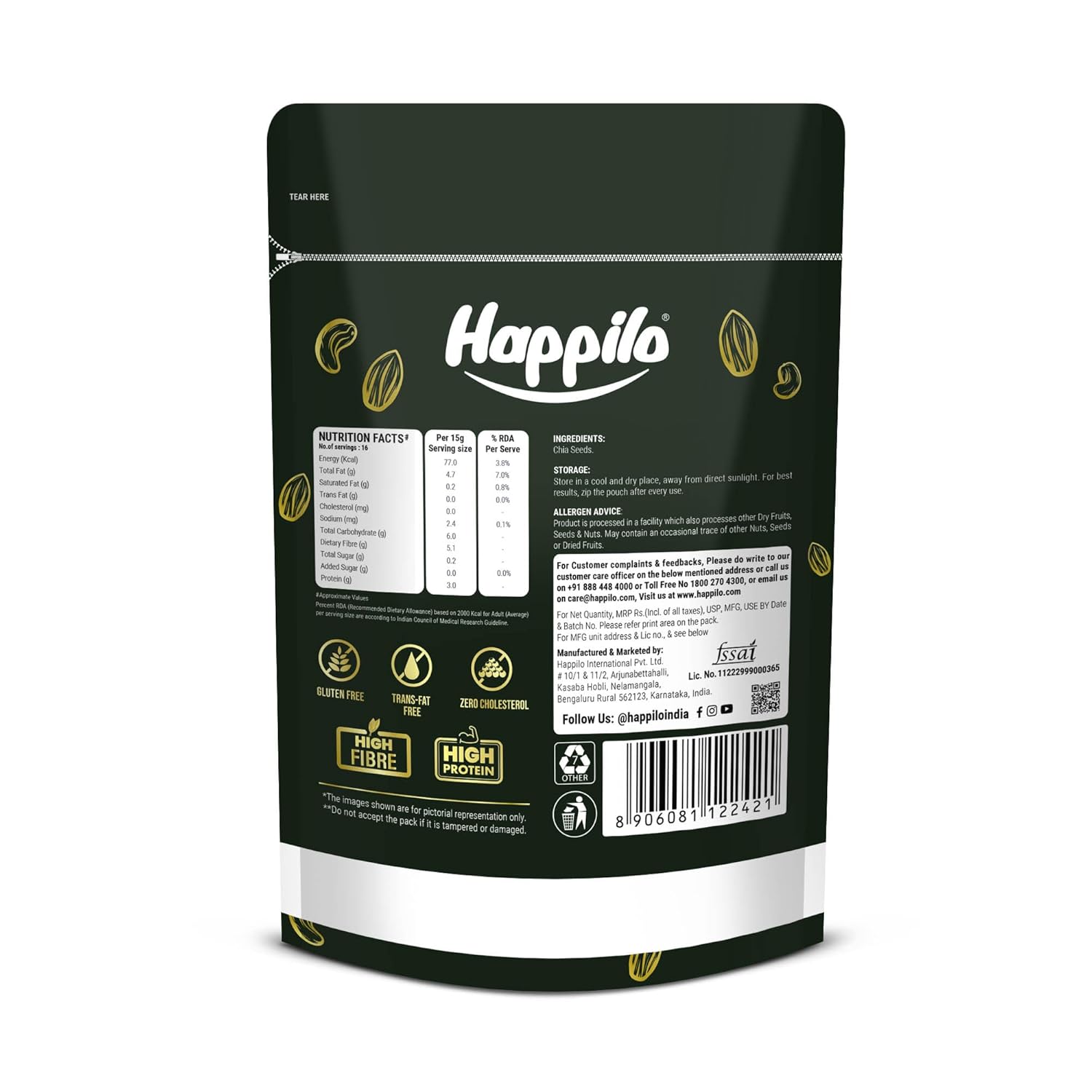 Happilo Premium Raw Chia Seeds 250g (Pack of 1) | Seeds for Eating | Healthy Snacks | Seeds for Weight Management | Nutrient-Rich Superfood, Rich in Omega-3 Fatty Acids, Fiber, Protein