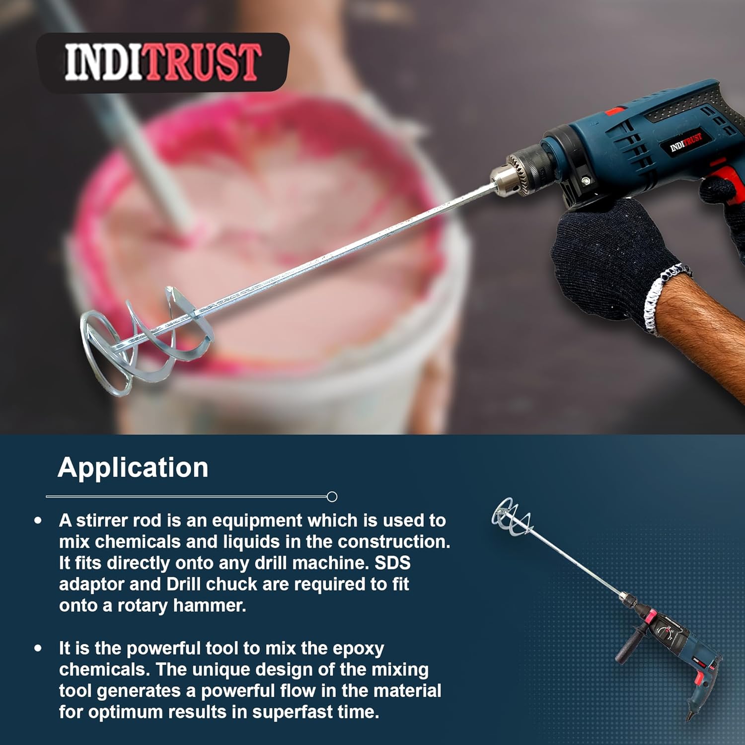 Inditrust new mini paint mixer rod Suitable for Drilling Machine and hammers (Without Drill Chuck)