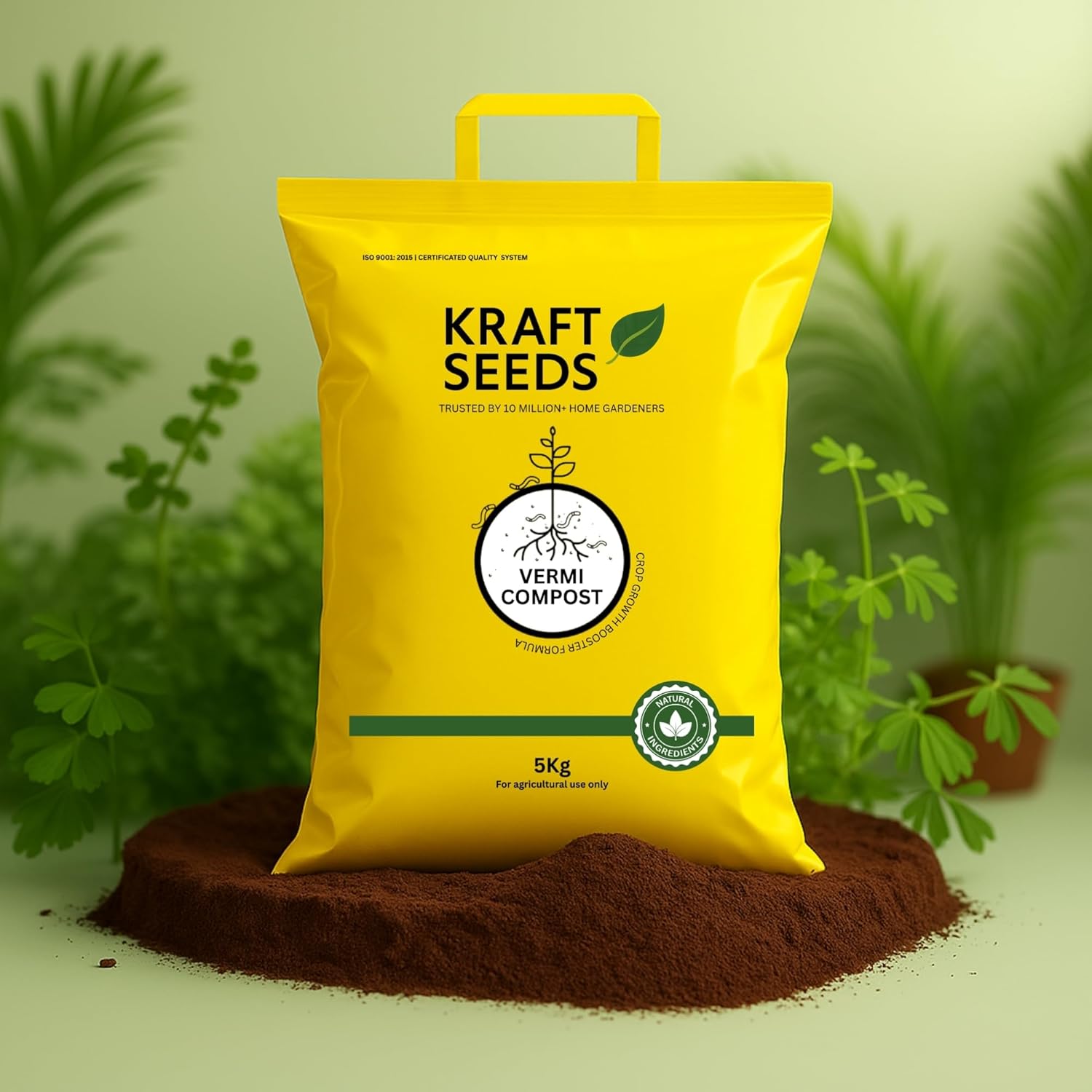 Kraft Seeds Vermicompost – 5kg | Organic Manure for Plants | Fertilizer for Home Gardening | Enriched Potting Soil Mix for Plants | Compost Garden Soil | Natural Booster for Flowering Plant