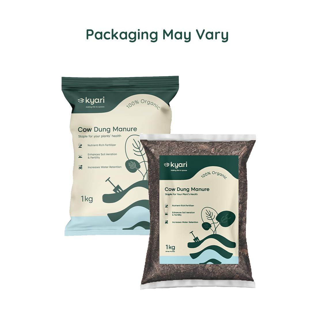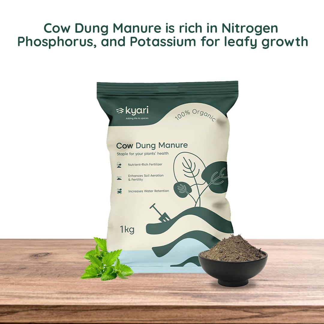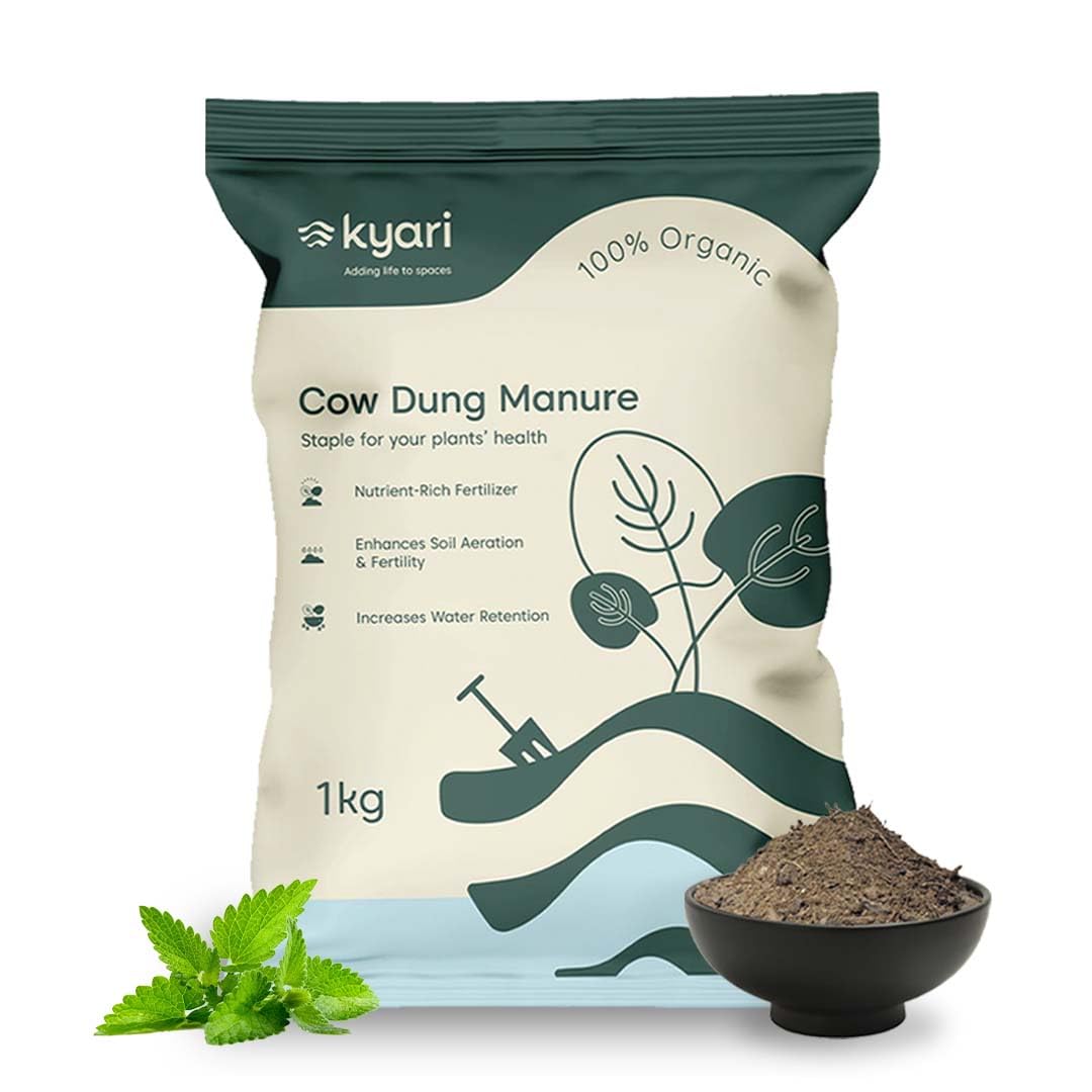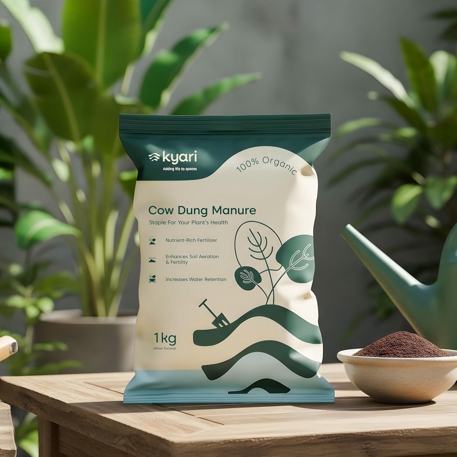 KYARI 100% Organic Cow Dung Manure Fertilizer – Premium Compost for Home Garden, Balcony Plants & Pots – 1 kg