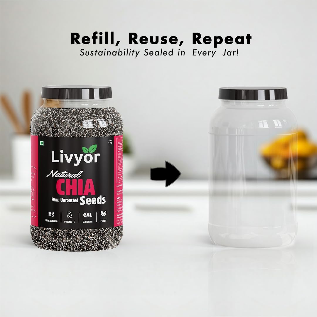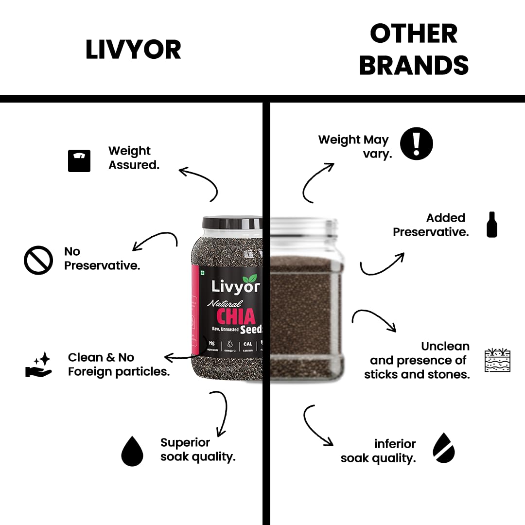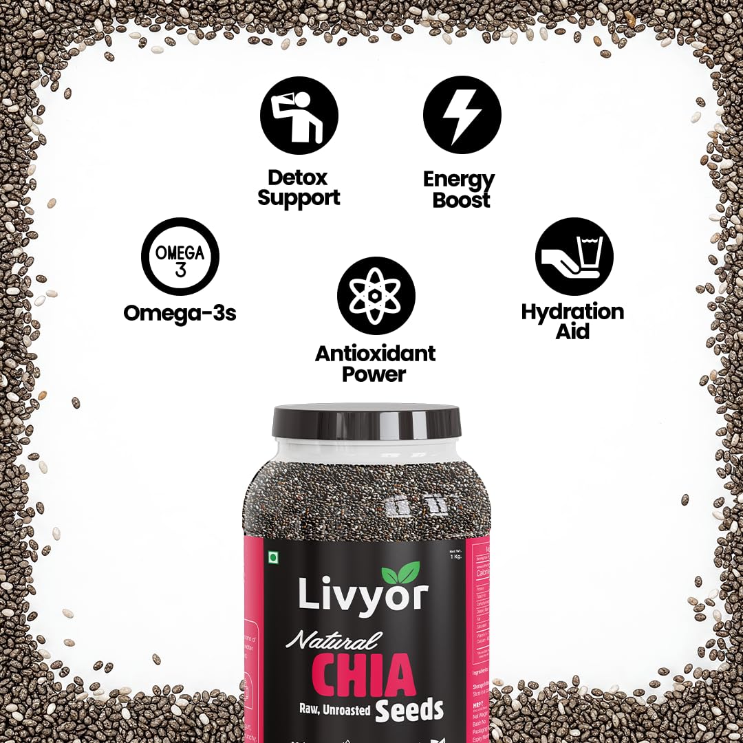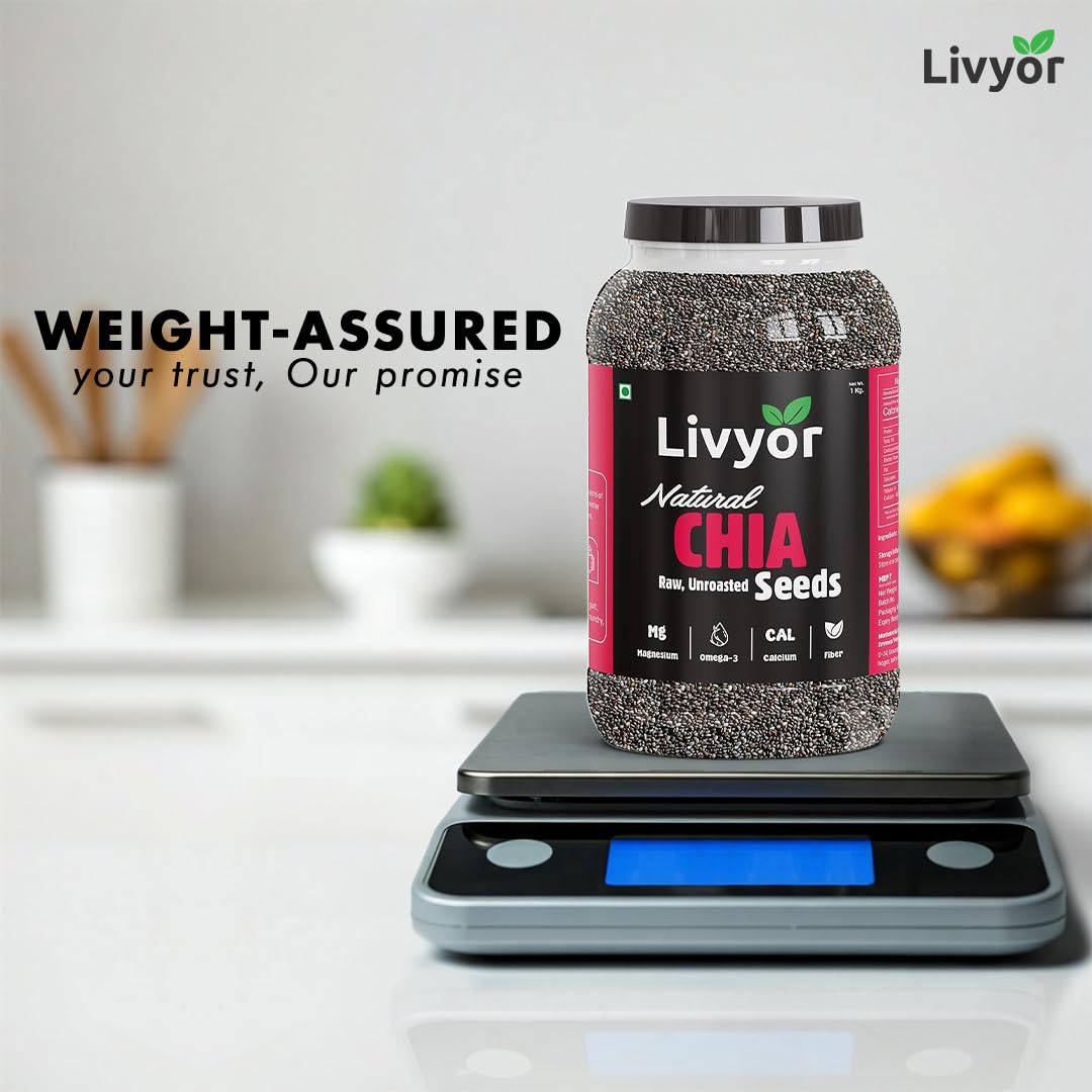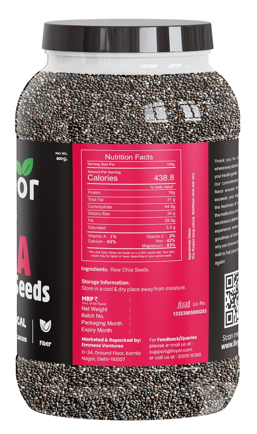 Livyor Raw Chia Seeds – 800g for Eating | Weight Management with Omega-3 | Rich in Calcium | Rich in Protein and Fiber | Pack of 1
