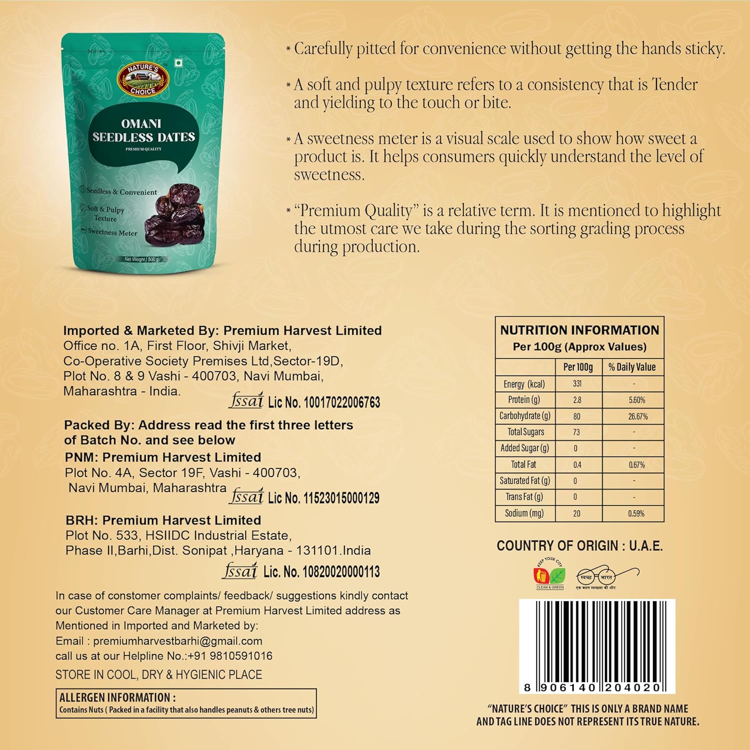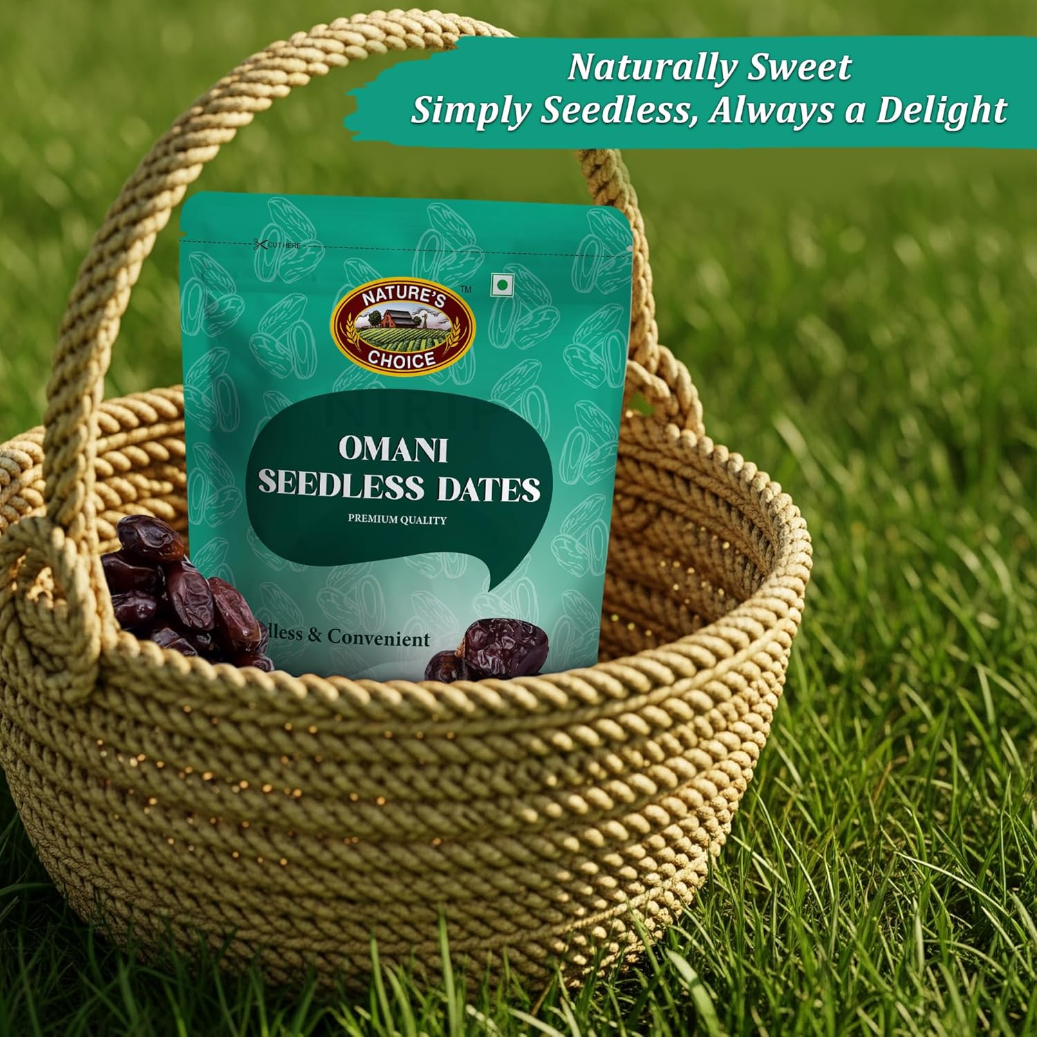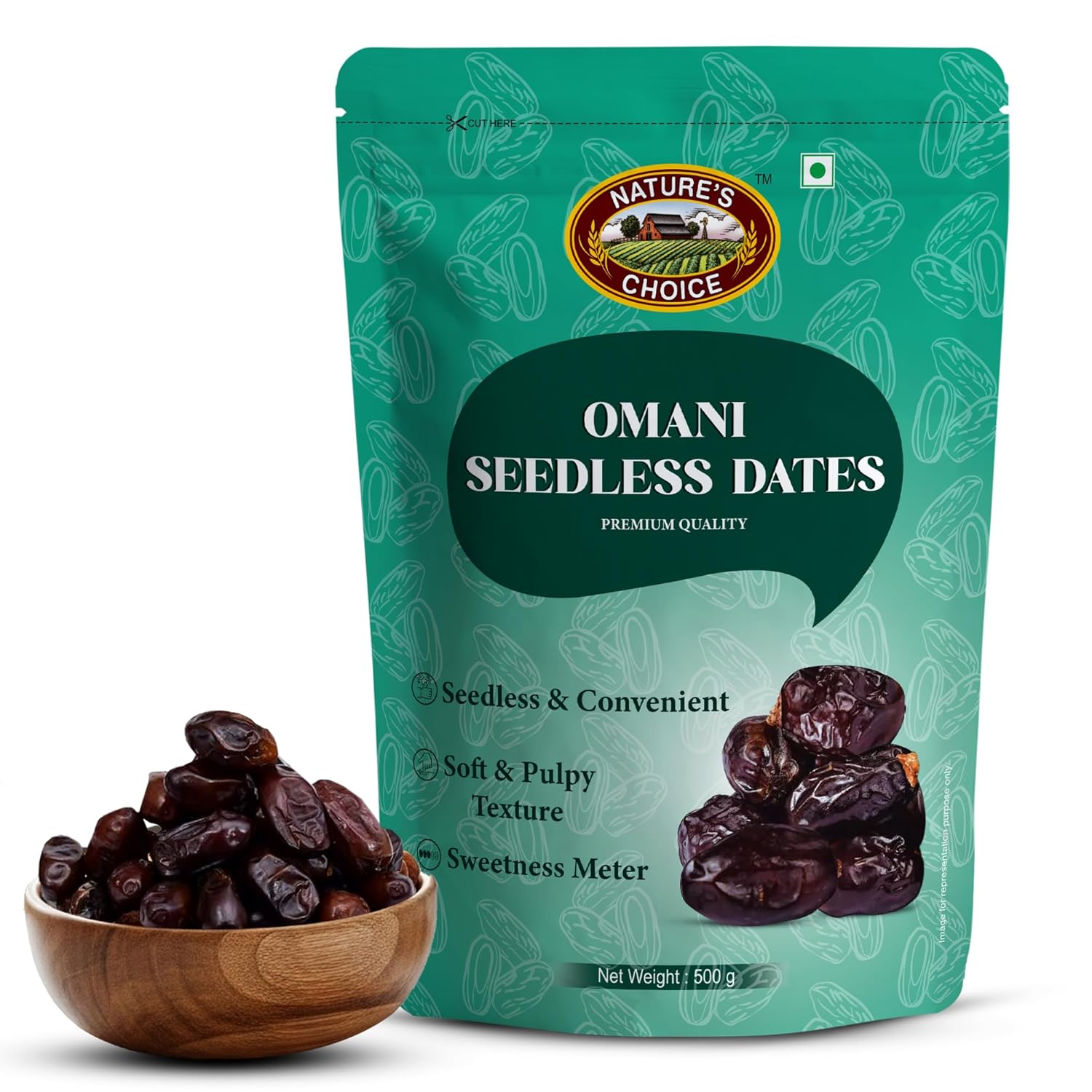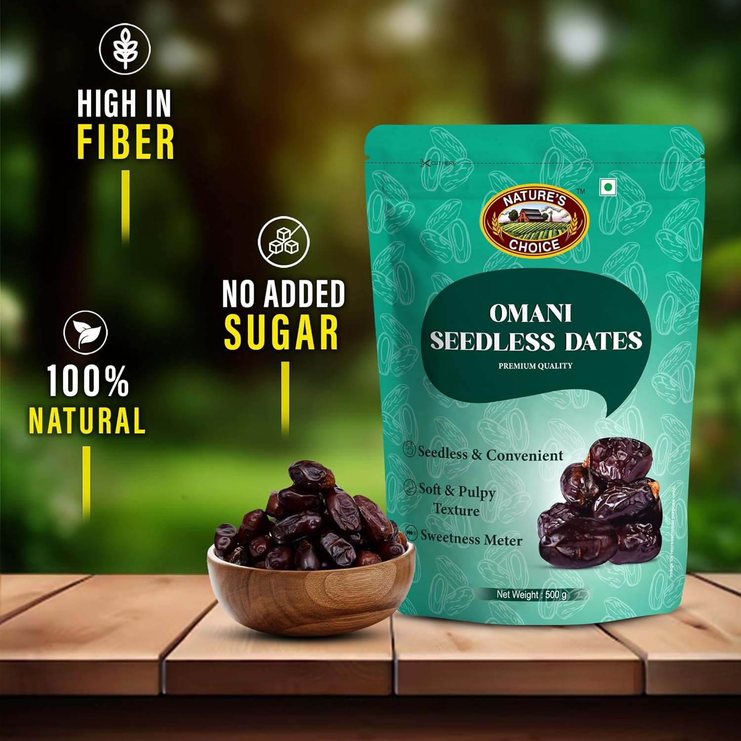 Nature’s Choice Big Omani Seedless Dates (500g) | Soft & Chewy Khajoor | All-Natural | High-Fiber Khejur | Healthy Snack | Natural Sugar | Dry Fruit | Deseeded Dates | Khajur | Khejur | Finest Grade