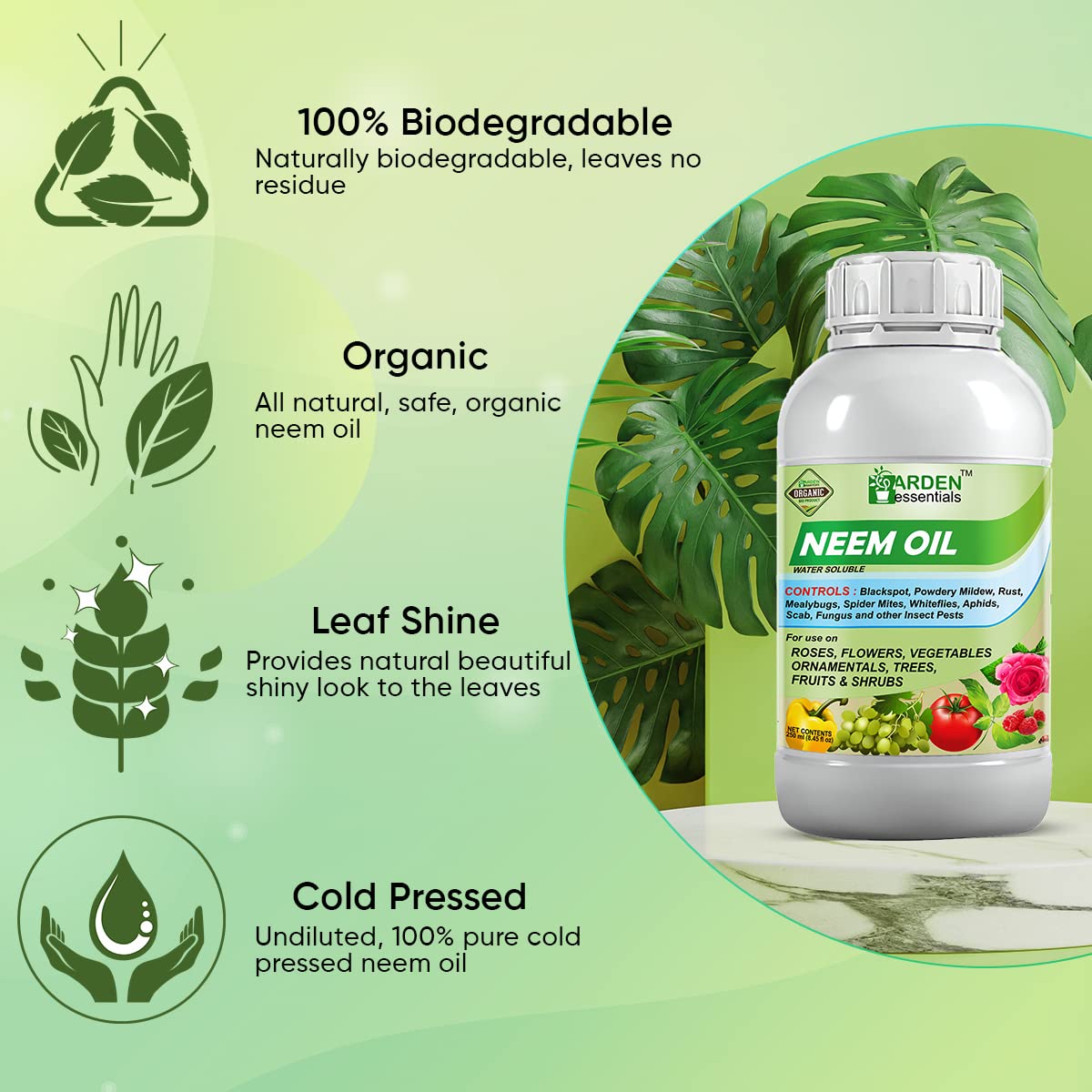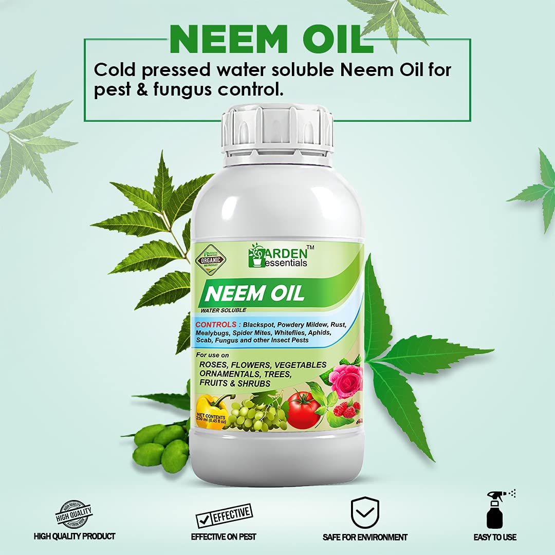 Neem Oil for Plants Insects Spray – Neem Oil for Plants – Organic Cold Pressed, Pure Neem Oil for Spray on Plants & Garden with Measuring Cup (water soluble) 1 Litre (250 ML)