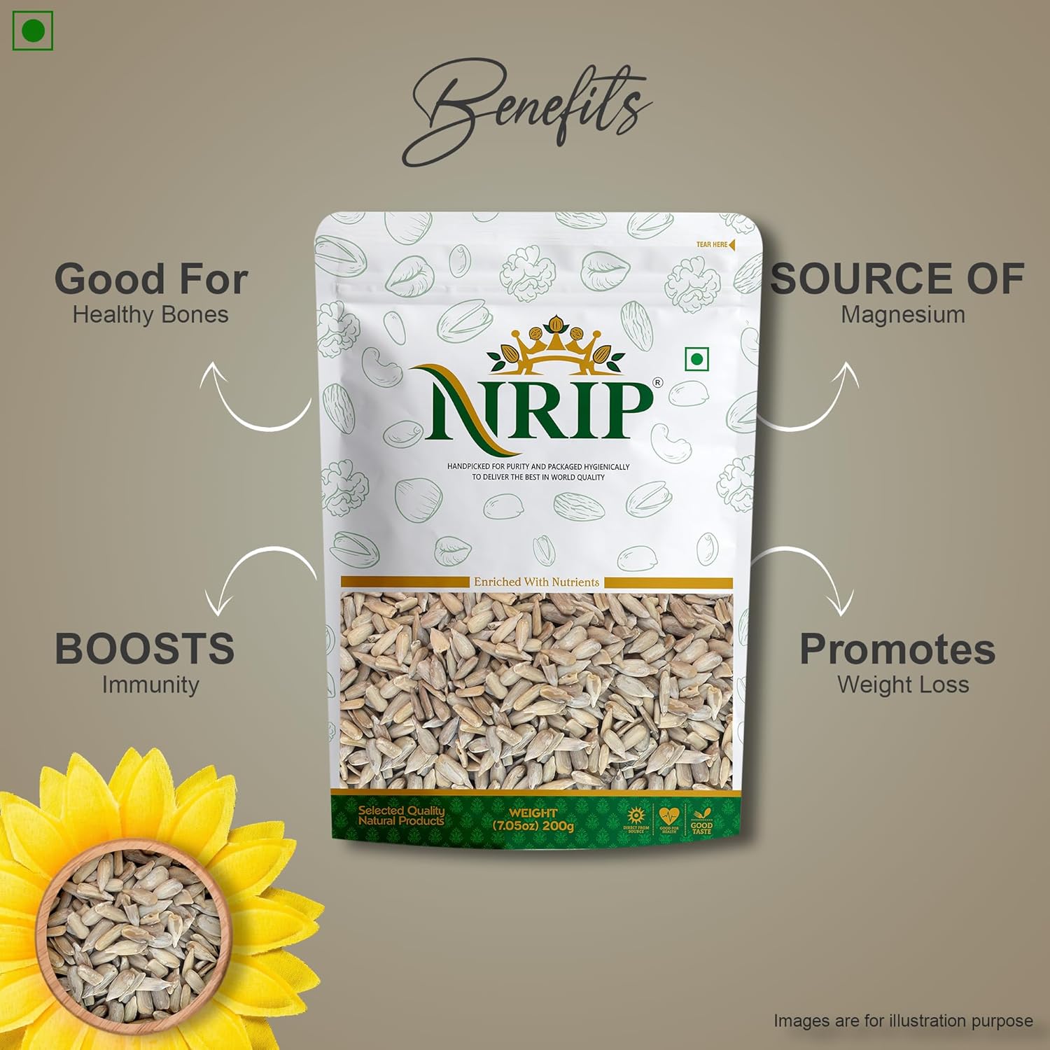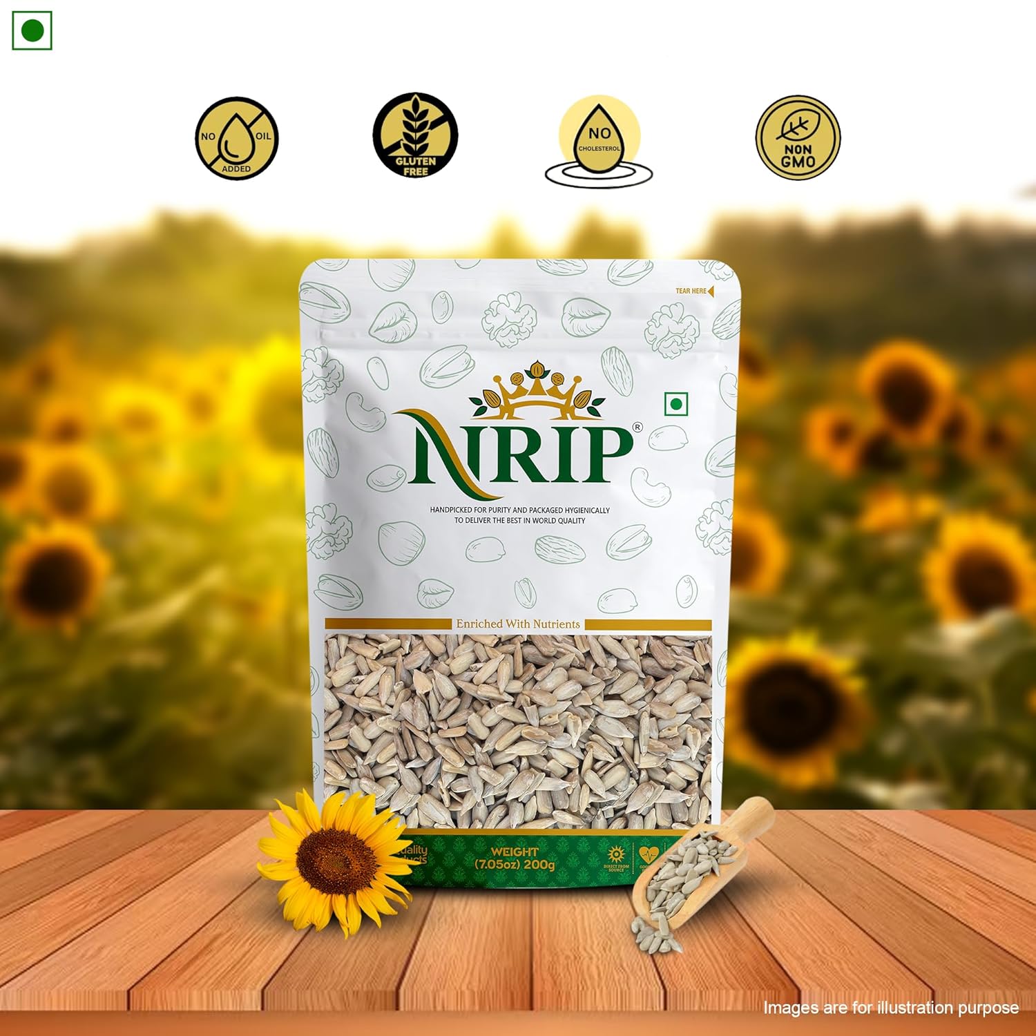 NRIP Premium Sunflower Whole Seeds, 200 g