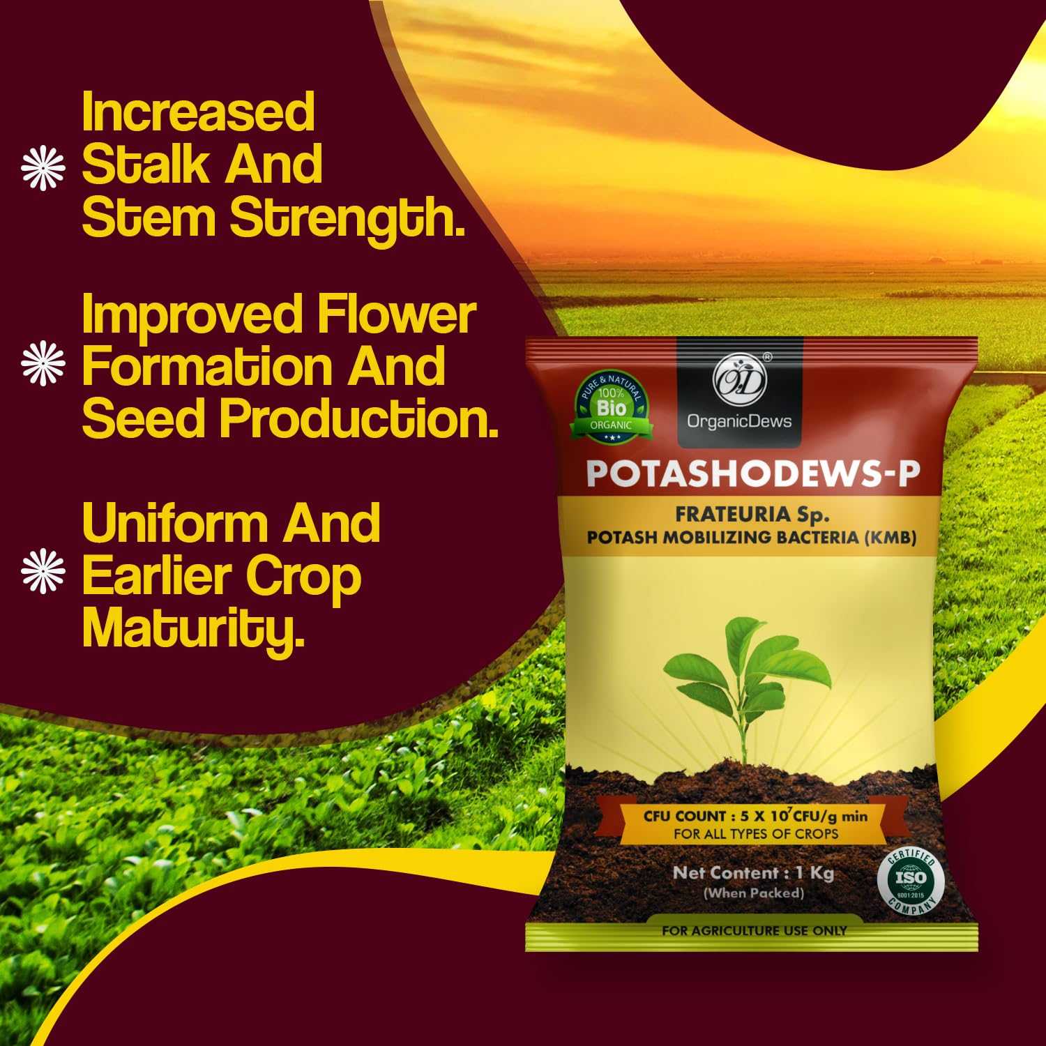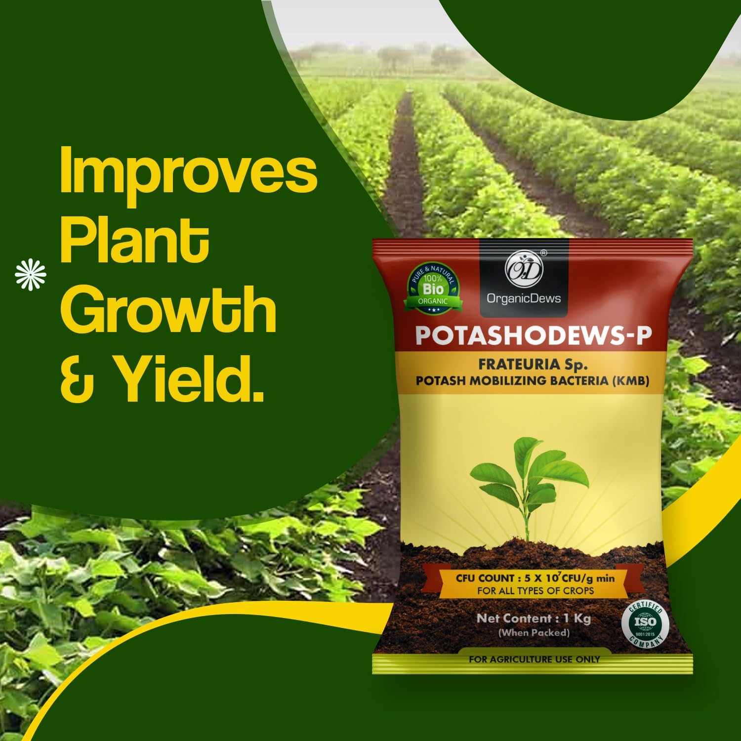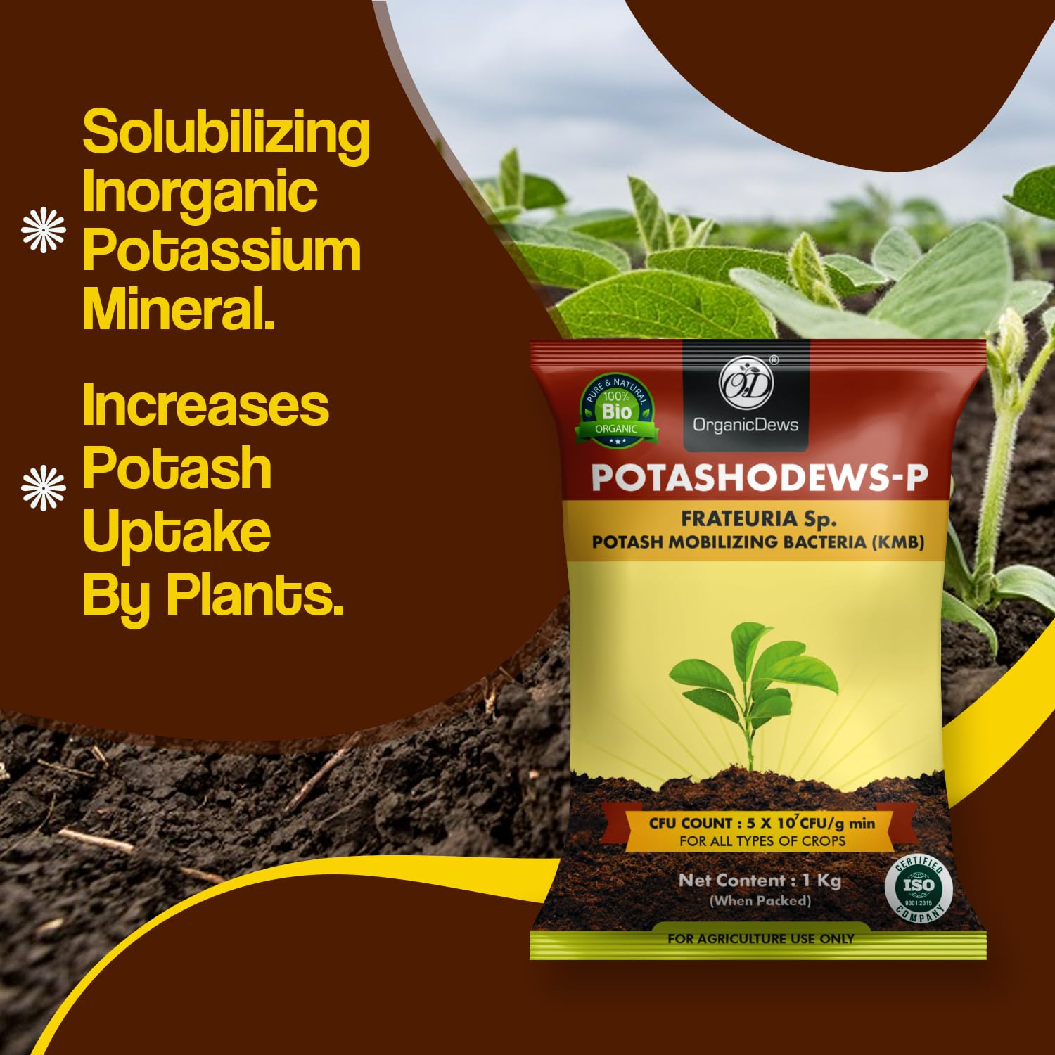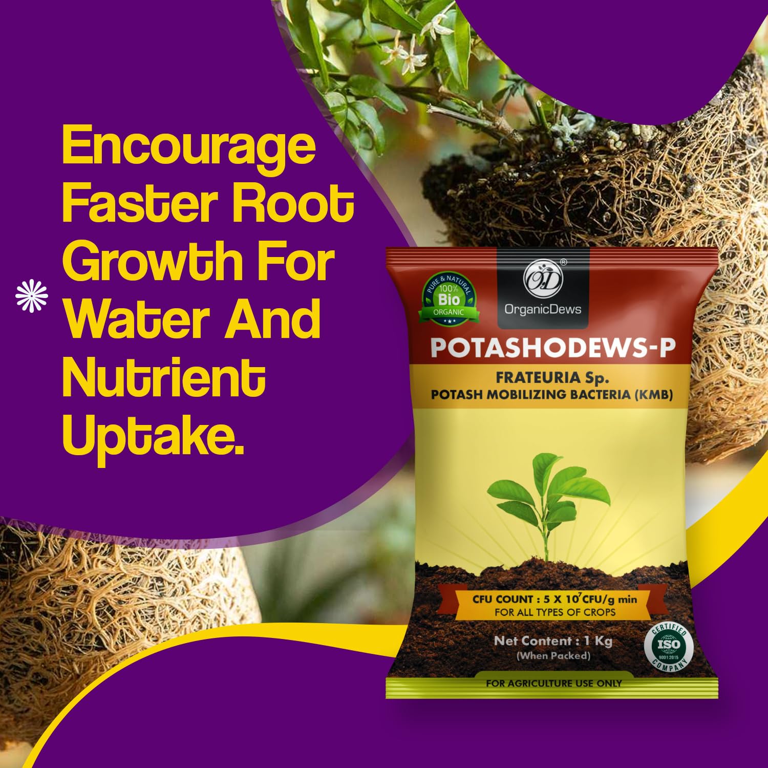 OrganicDews Potash Mobilizing Bacteria Bio Fertilizer (KMB) 2 Kg (5×10^7 CFU/g) for Plants – Faster Root Growth, Improve Quality Flower and Fruits 2 Kg