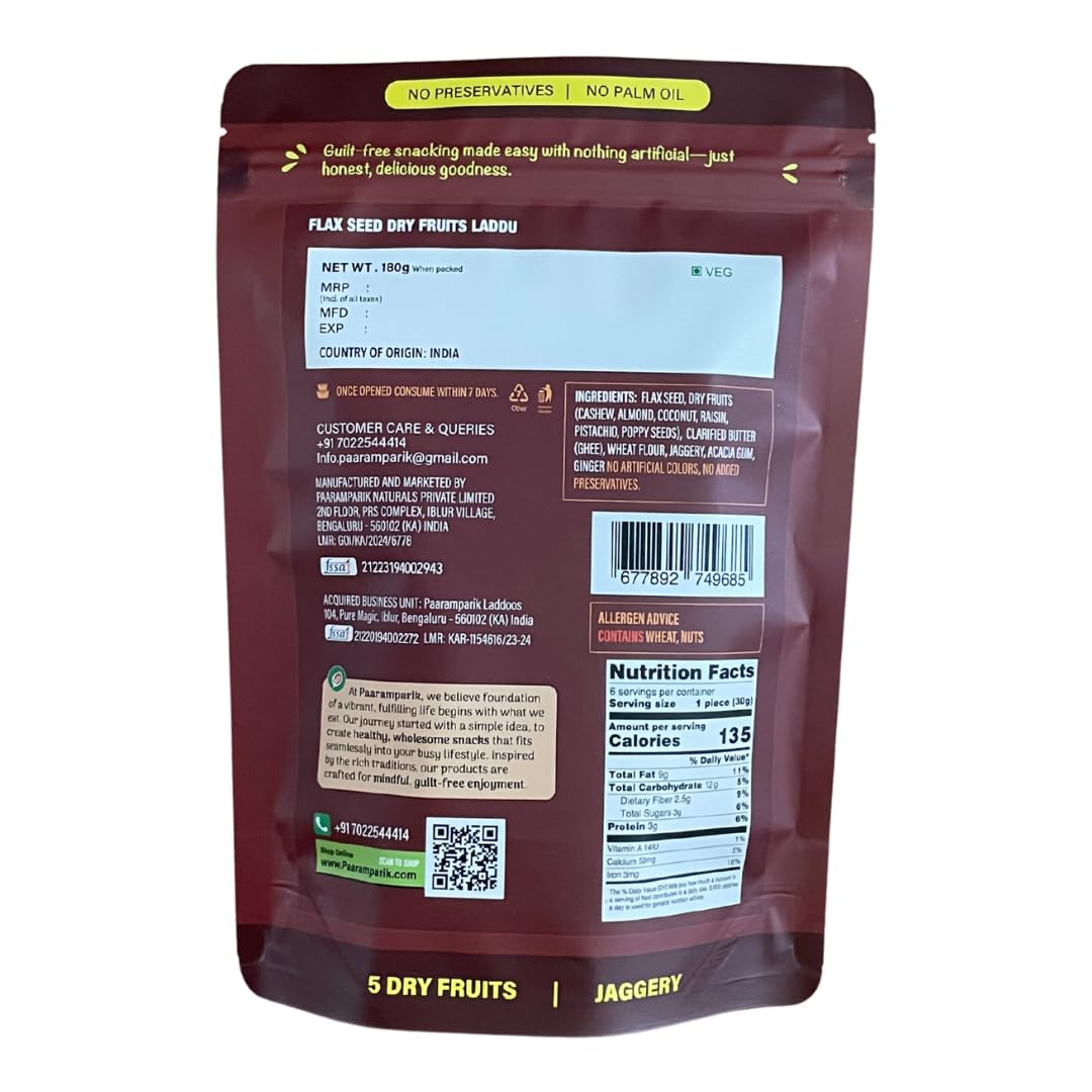 Paaramparik Flax Seeds Laddu| Dry Fruits Laddoo| Healthy Snacks| Jaggery, 180 gm x Pack of 1