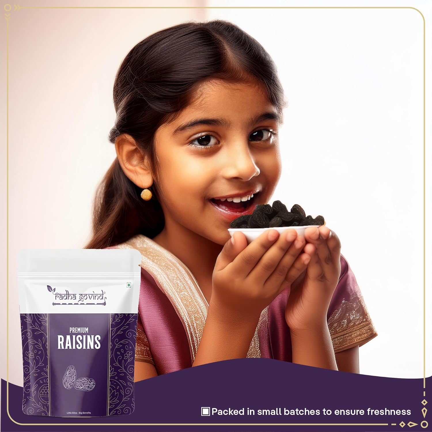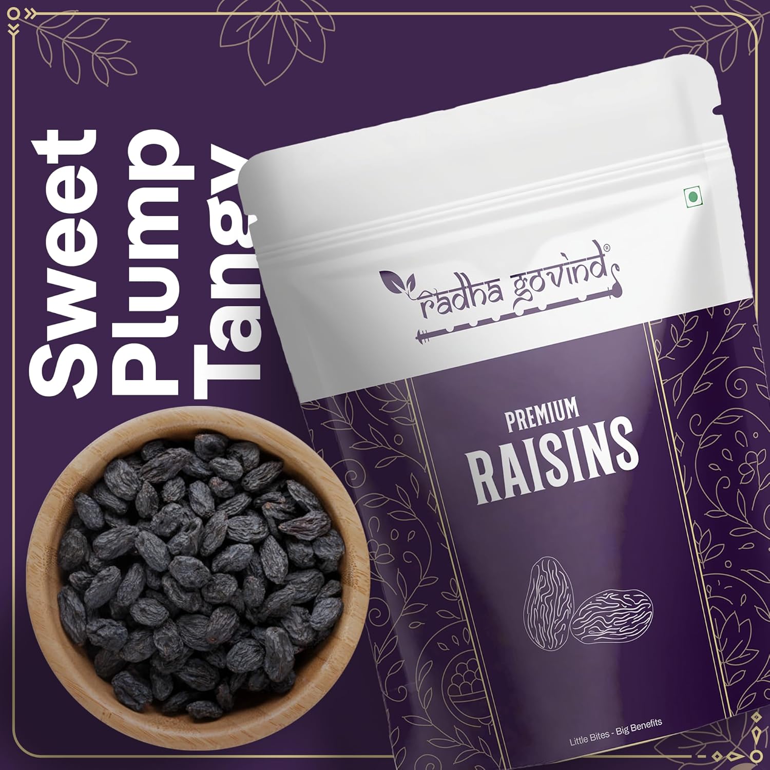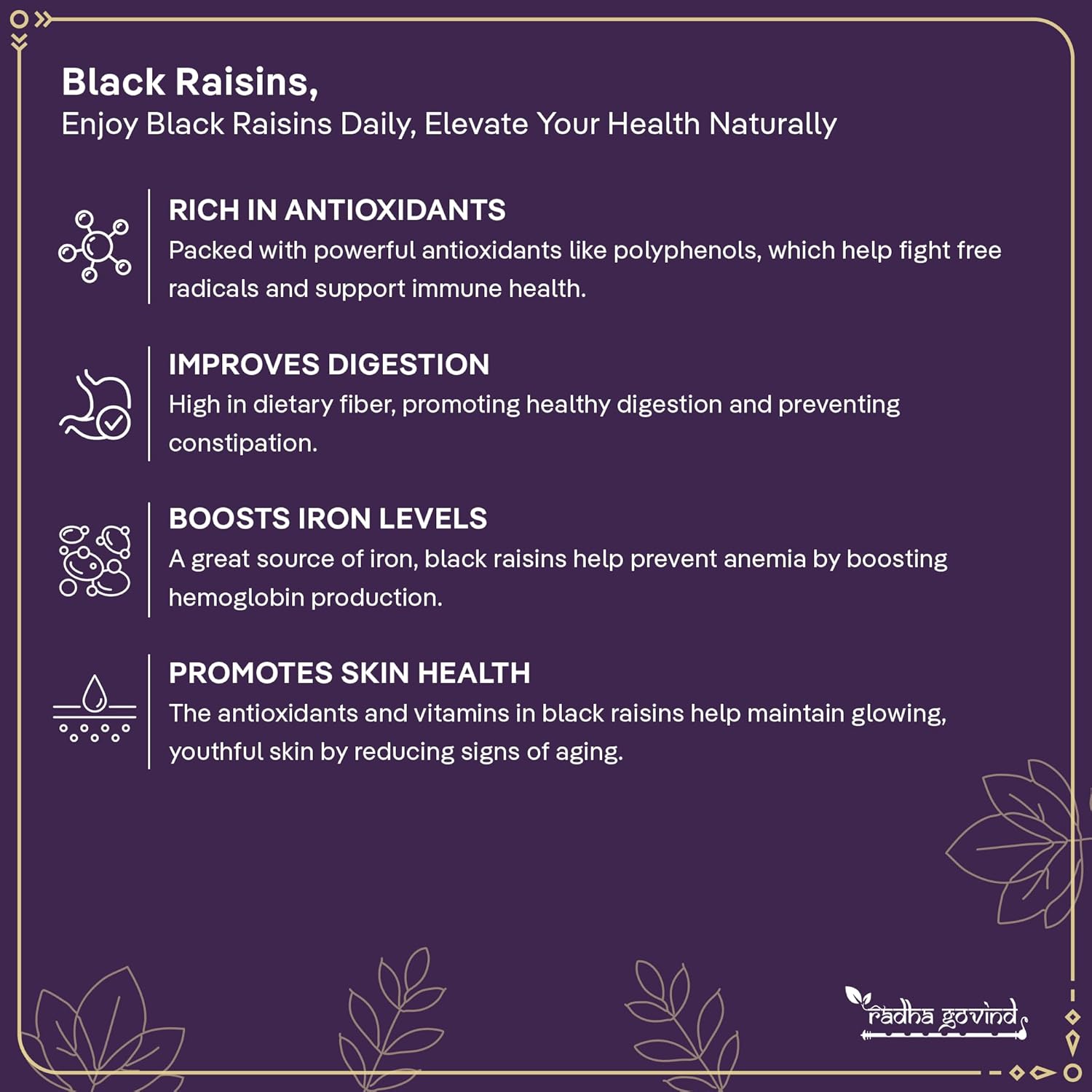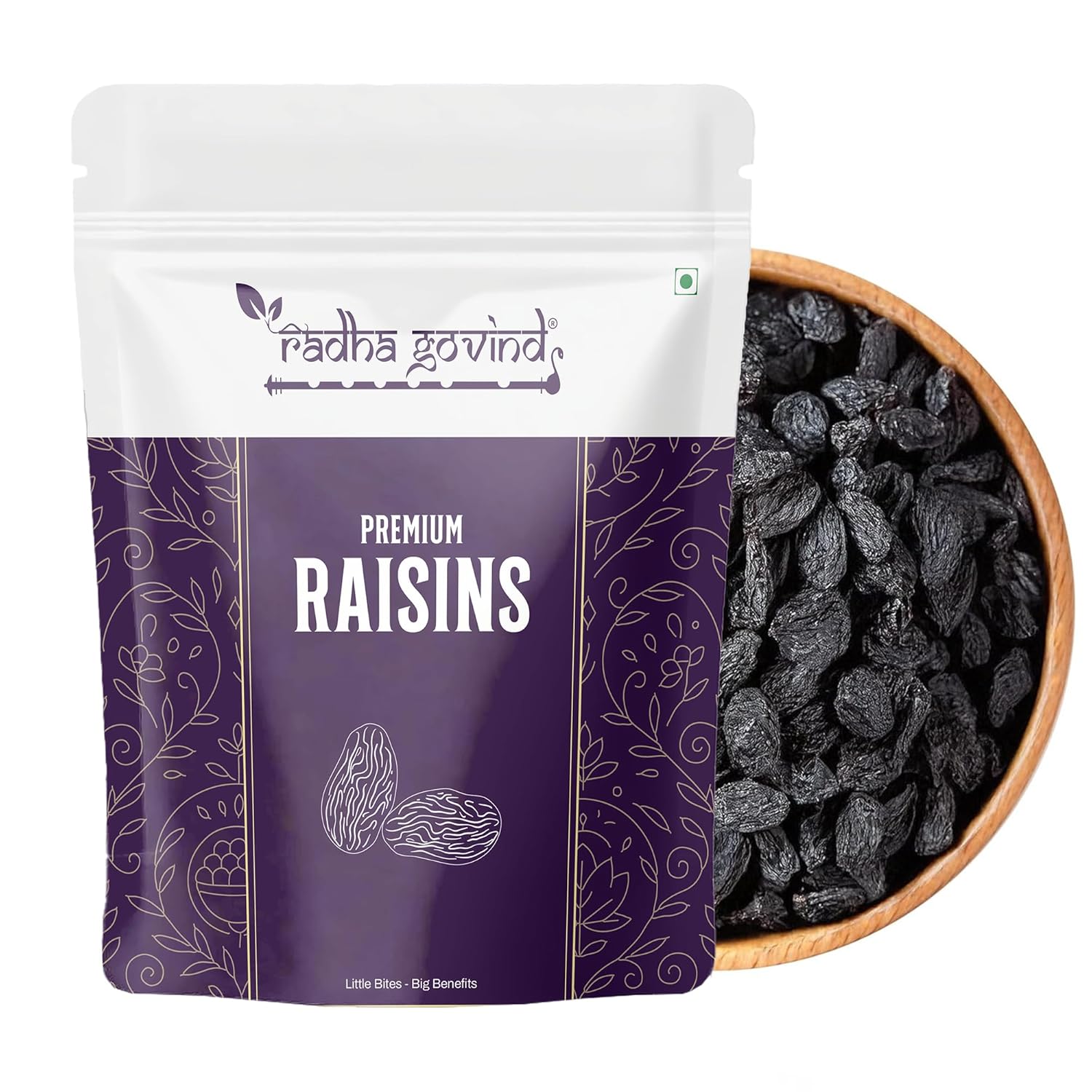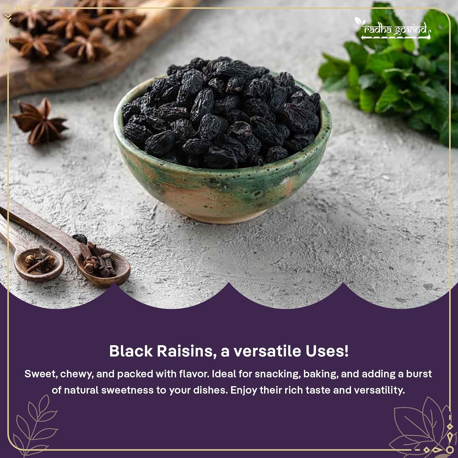 Radha Govind Black Raisins Seedless 500g | Premium Dried Kishmish Without Seeds | Nutritious Dry Grapes for Energy, Digestion & Healthy Snacking | Kali Darakh Daily Nutrition Wellness Boost Pack