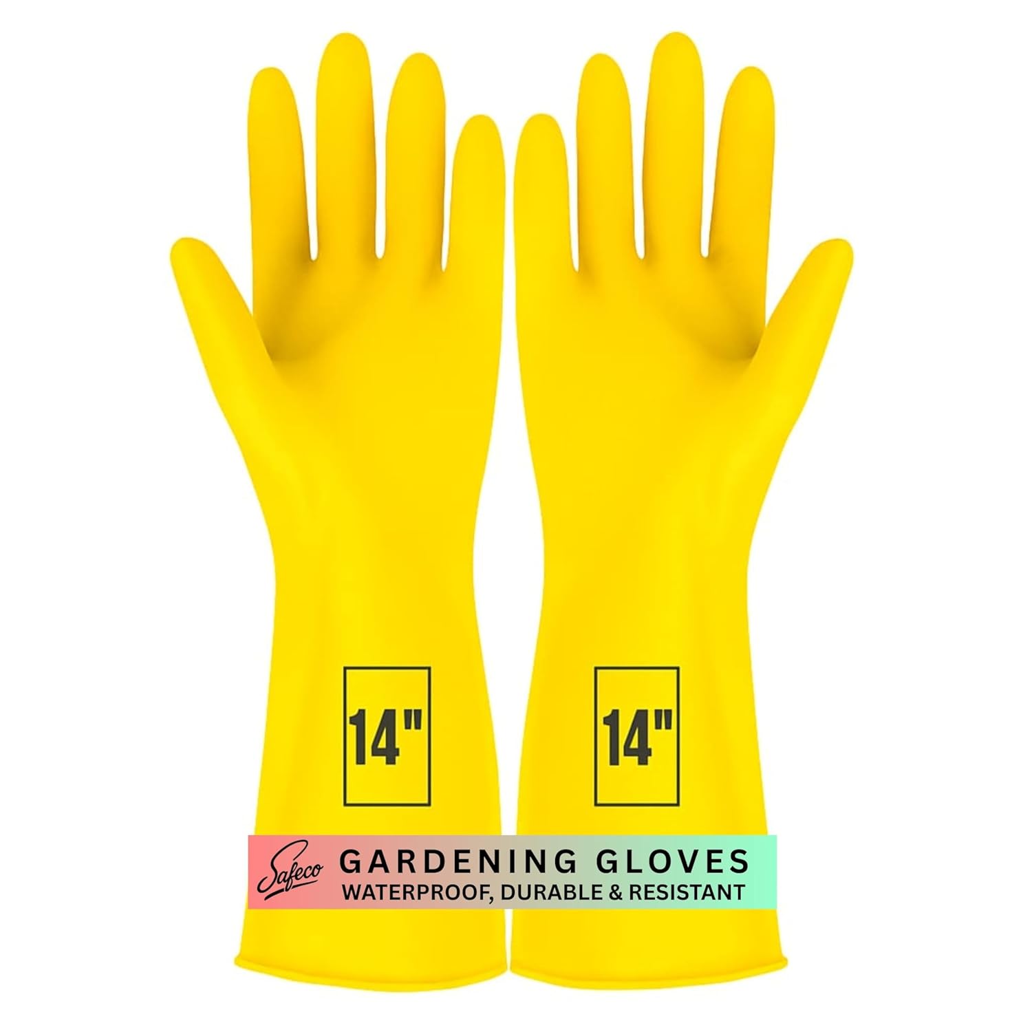 SAFECO 14 Inch Thick & Long Heavy Duty Rubber Hand Gloves for Cleaning, Gardening, Waterproof Hand Gloves easy Garden Work for handling tools & equipment for garden work, kitchen cleaning, farming