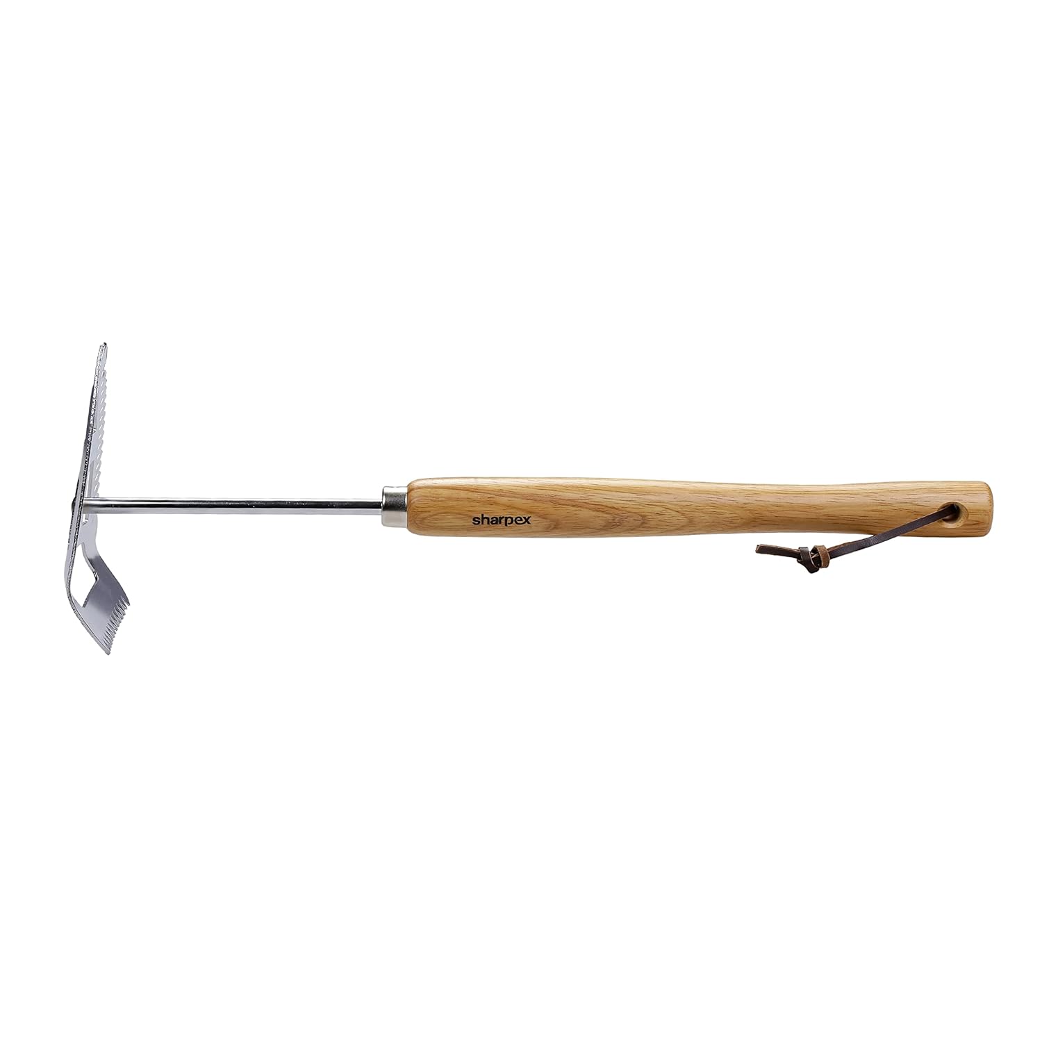 Sharpex 3-in-1 Gardening Tool with 8.5 cm Stainless Steel Blade & Wooden Handle | Heavy Duty Hoe for Loosening Soil, Planting, Digging | Works as Garden Tiller