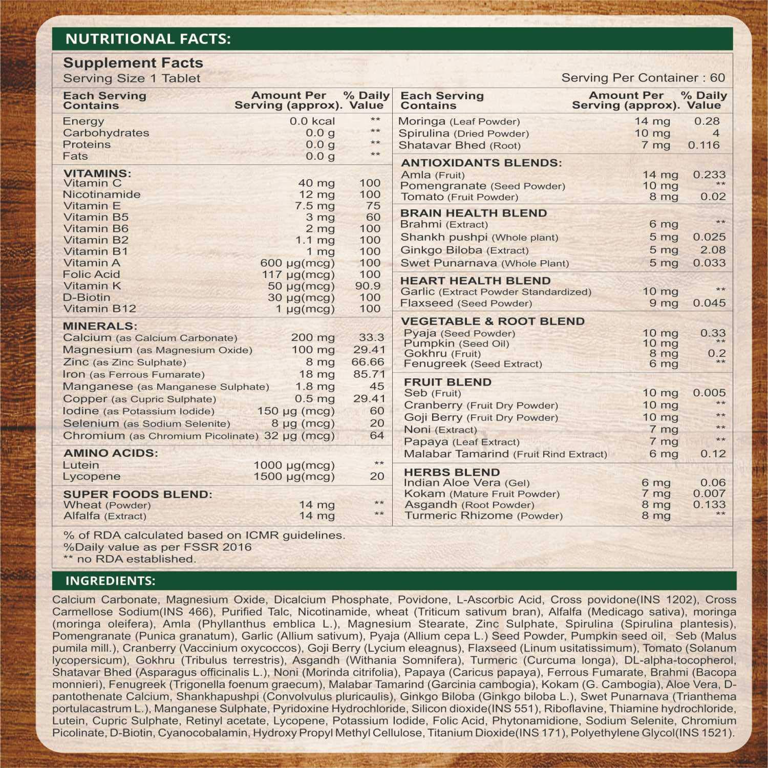 Smart Greens Plant Based Wholefood Multivitamin for Women Enriched with 51 Ingredients Includes Micronutrients, Amino Acids, Superfood Greens, Fruits, Vegetables & other Extract & Powder – 60 Tablets