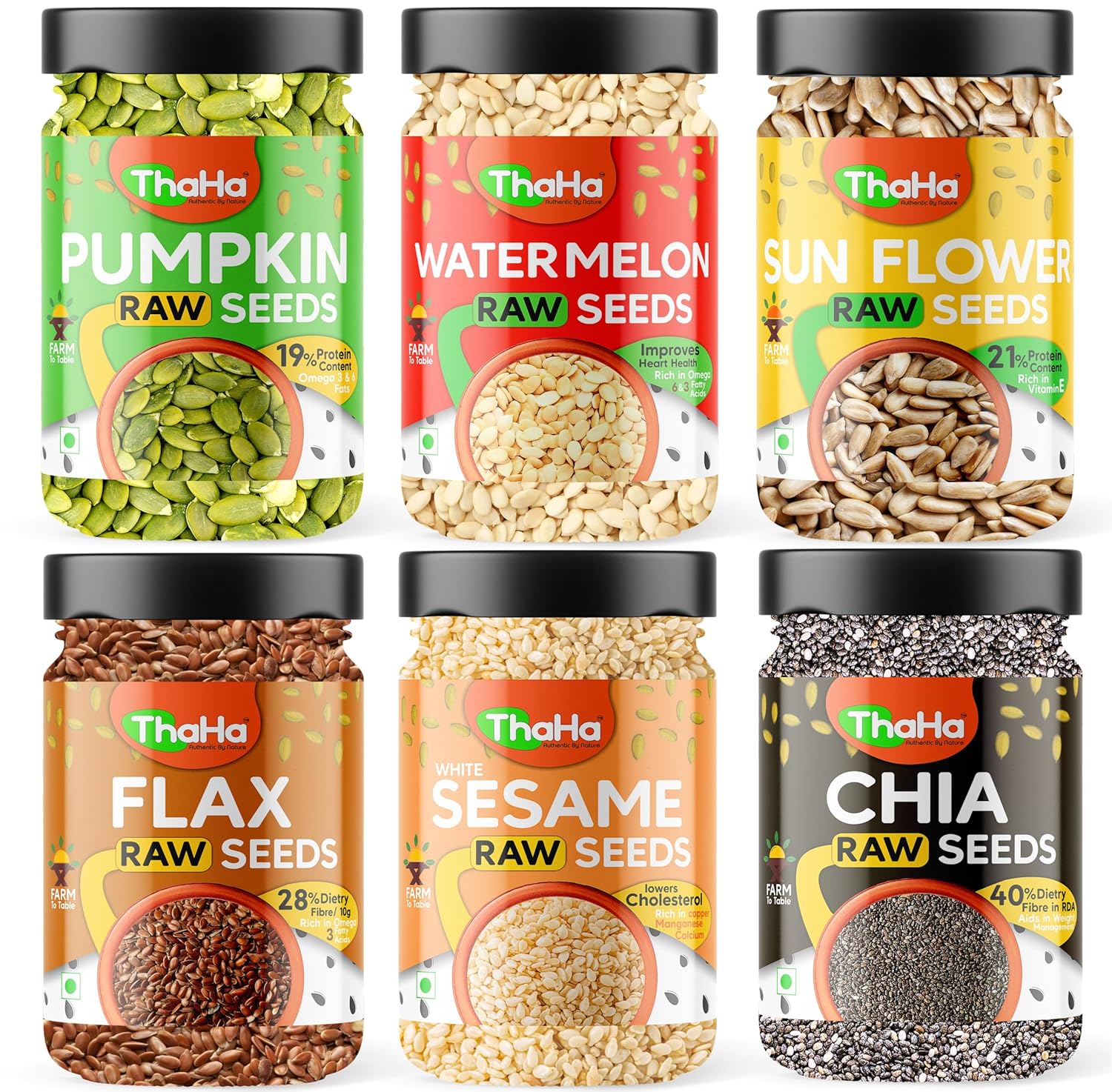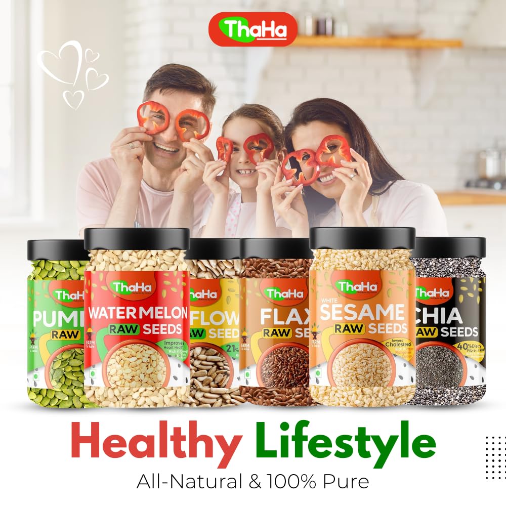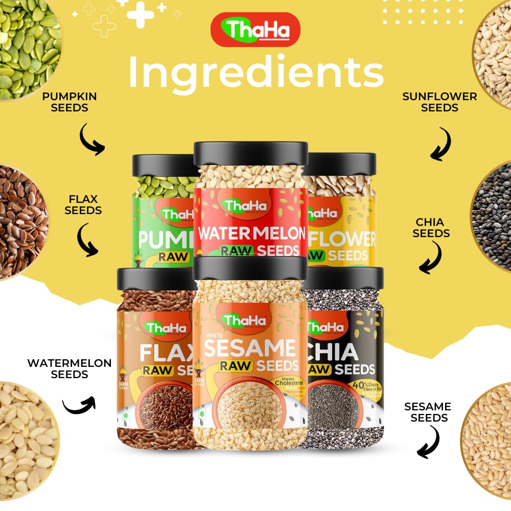 Thaha Super Seeds Combo Pack of Pumpkin, Sun Flower, Watermelon, Sesame, Chia, Flax | 900 Grams (150 Grams X 6) | Mix Seeds for Eating