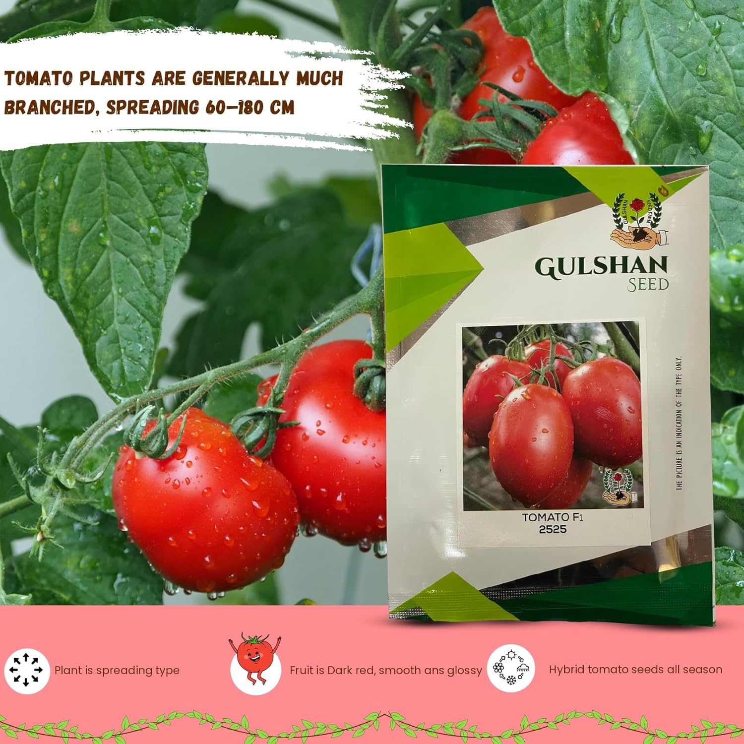 Tomato F1 2525 Vegetable Seeds | Premium Hybrid Tomato Seeds for Farming, Seedbeds, Pots & Home Garden | High Yield, All-Season, Easy to Grow, Disease Resistant Plants