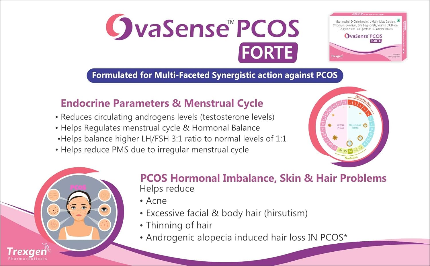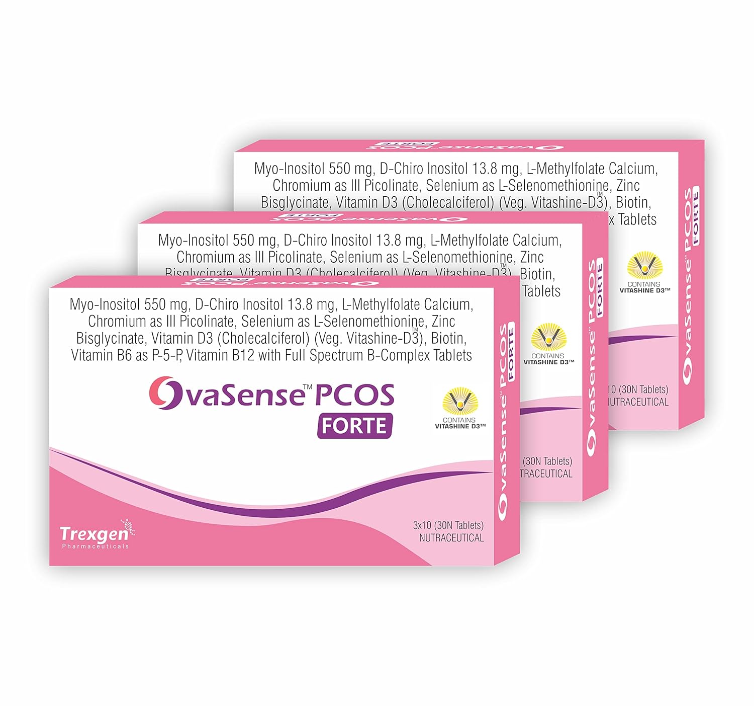Trexgen® OvaSense-PCOS Forte Synergistic Myo-inositol & D-Chiro Inositol, Vitamin D, B-complex,Zinc, Chromium, Selenium & Micronutrients (30 x 3 box = 90 Tablets)
