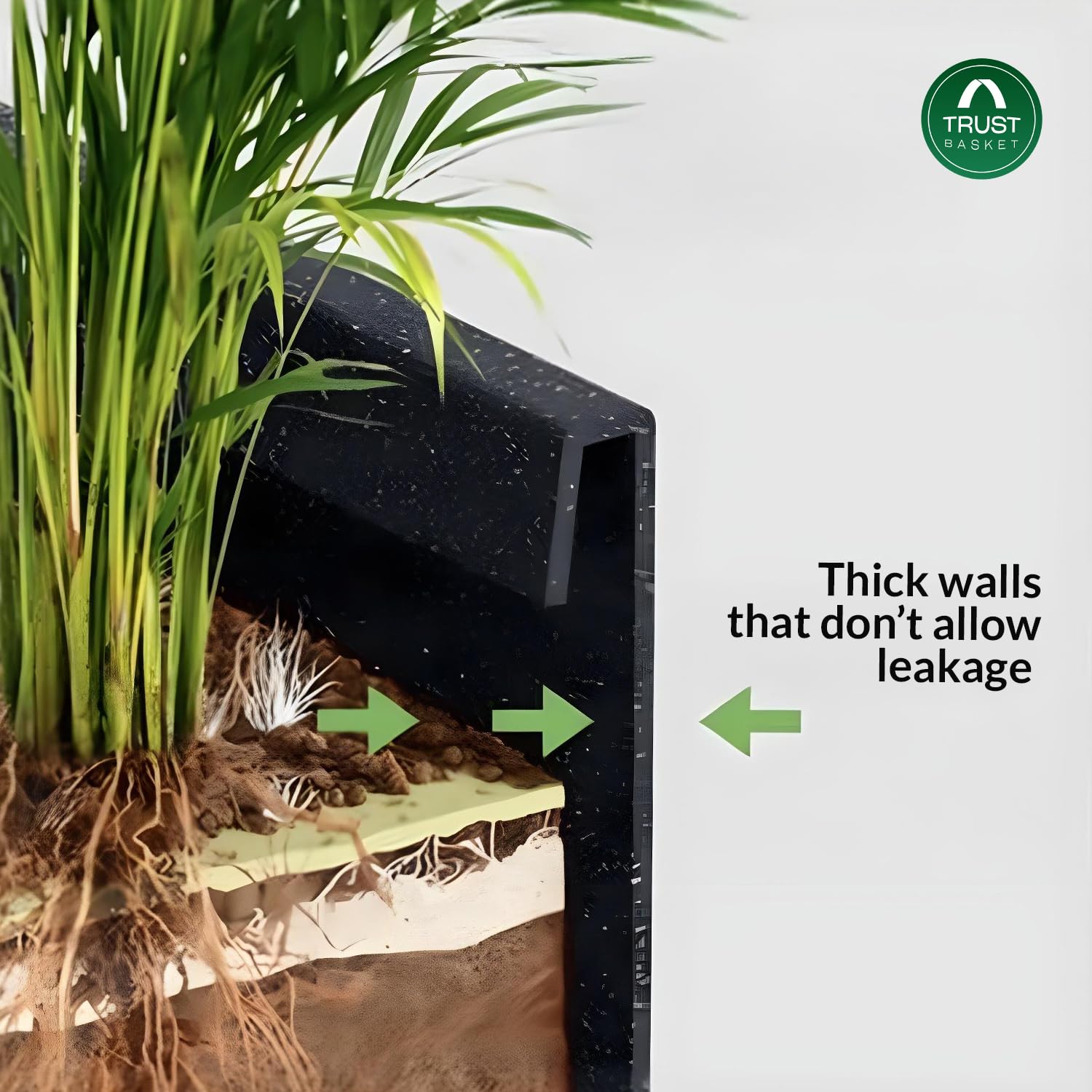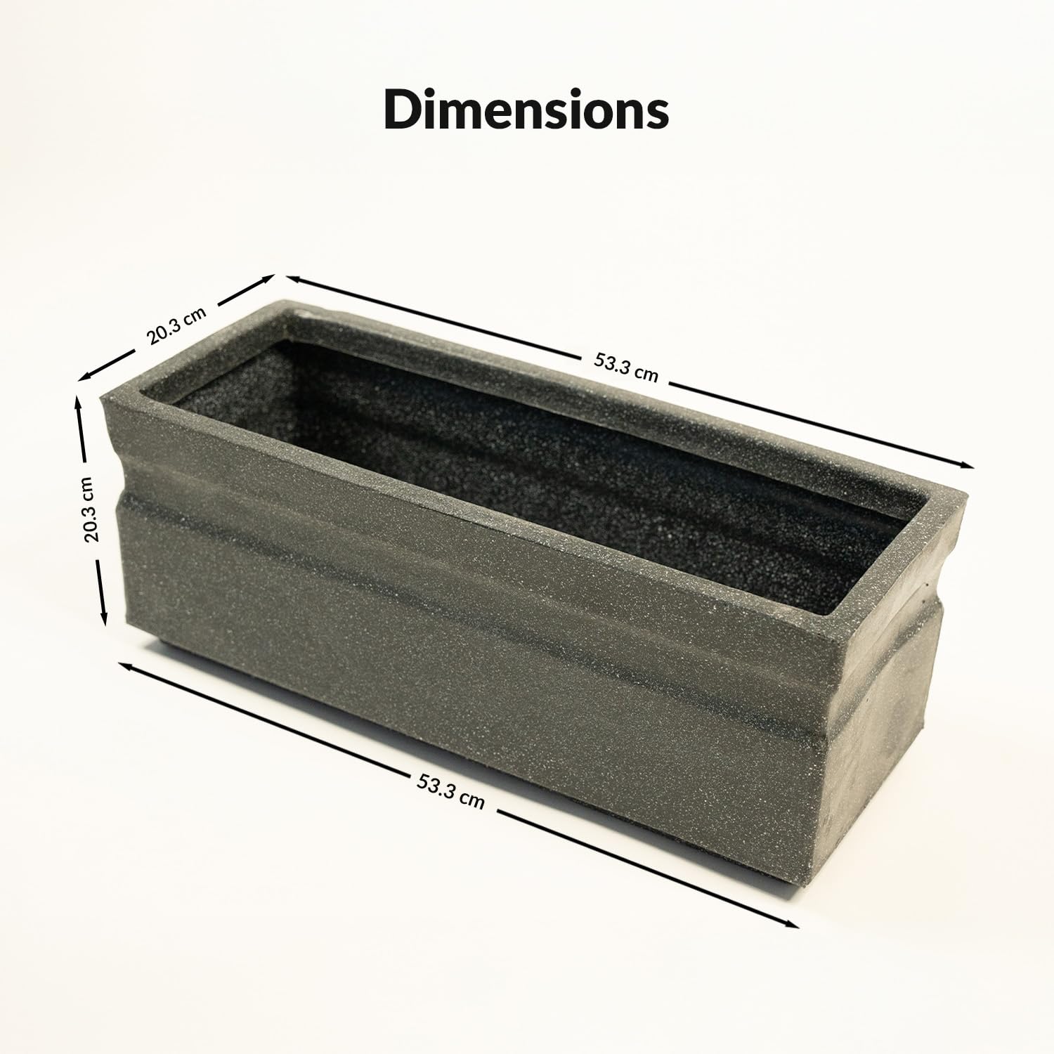 TrustBasket Haven 21 Inch German Lightweight Polymer Planter | Unbreakable UV-Protected Flower Pot for Living Room, Balcony, Garden | Large Planter for Home Décor | Rectangular Planters | Grey