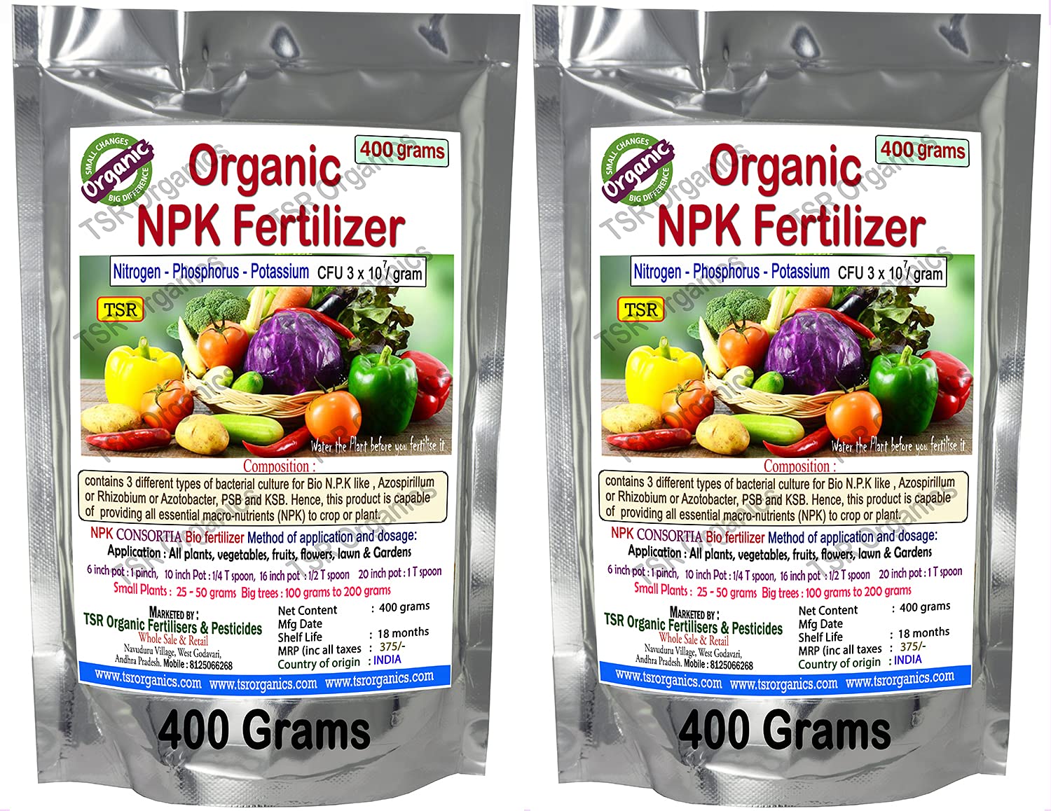 TSR Organic Fertilisers & Pesticides 3-in-1 Organic NPK Garden Fertilizer (400 + 400 grams) with Organic Nitrogen Phosphorous Potassium bio Fertilizer granules