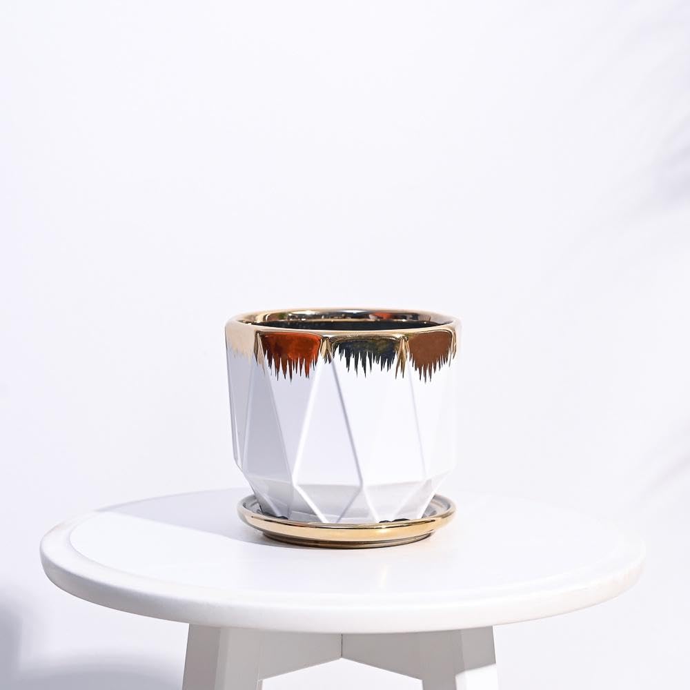 UGAOO Prism Ceramic Pot |Indoor Ceramic Planter for Home, Office, Garden, Balcony – White (5 Inch)